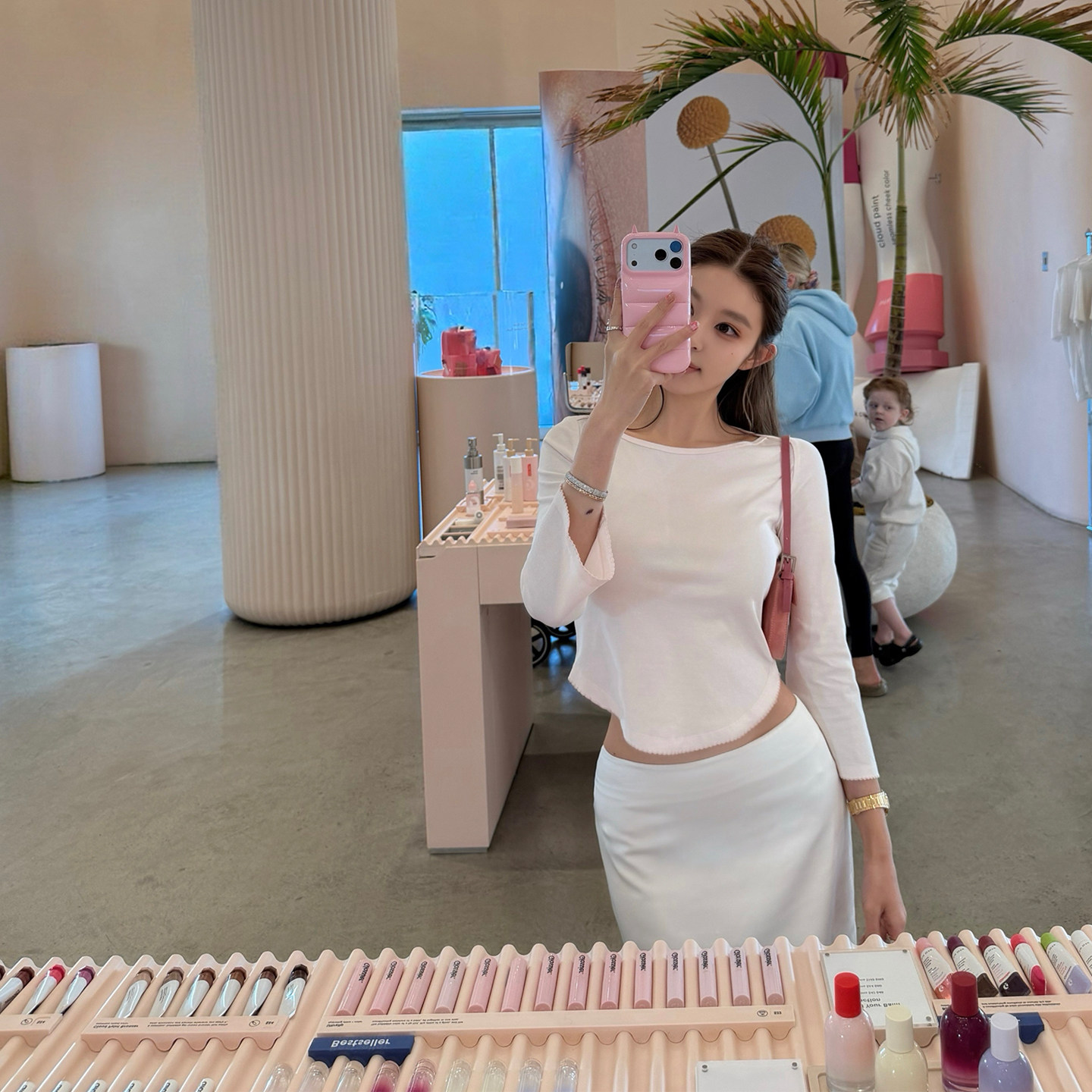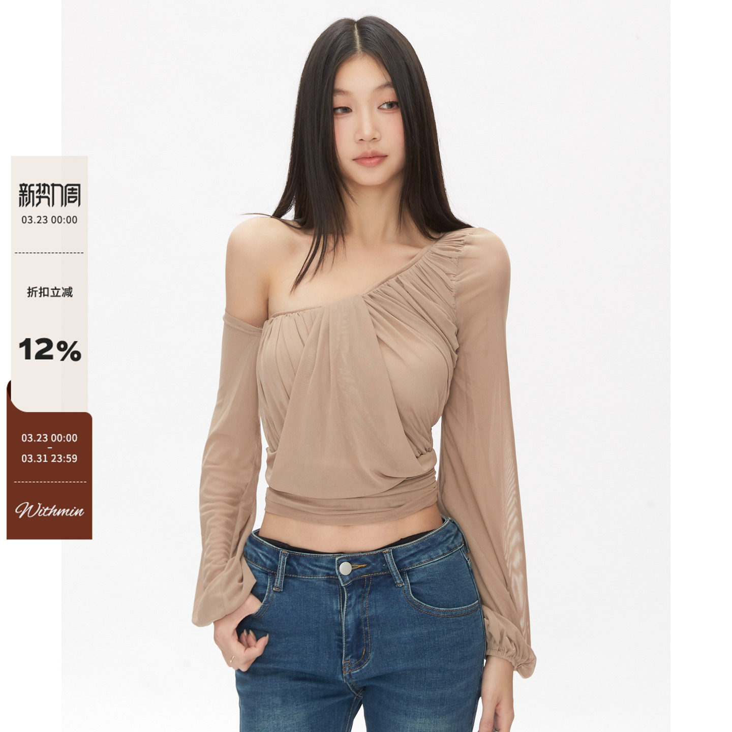 WITHMIN Sexy Slanted Shoulder Hot Girl Top Design Niche Women's Summer Sunscreen Smock Women's Long Sleeve T-Shirt Thin Style