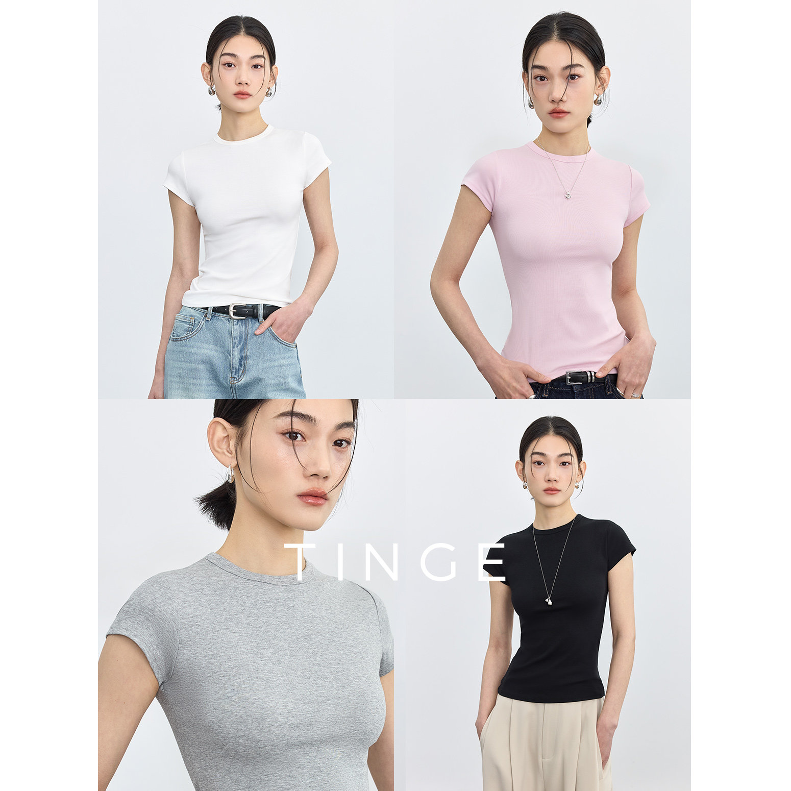 TINGE close-fitting dopamine T-shirt slimming crew neck top sports short sleeve straight shoulder women's summer underwear