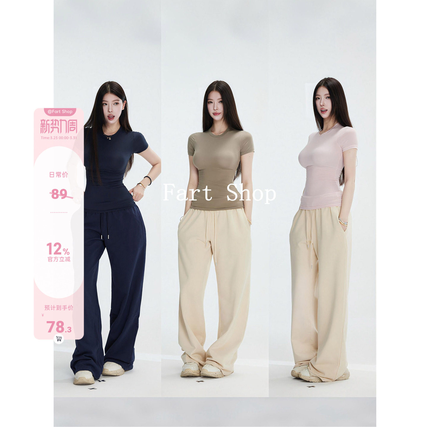 【Fart Shop】skim* Short sleeve spring and summer slim stretch straight shoulder tight pink T-shirt half sleeve top for women