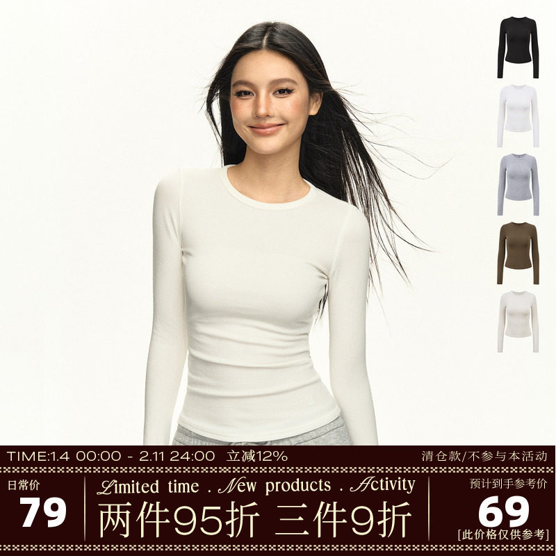 Ariseism American Retro Basic Long Sleeve T-Shirt Women's Fall 2025 New Slim Top with Underwear Underneath