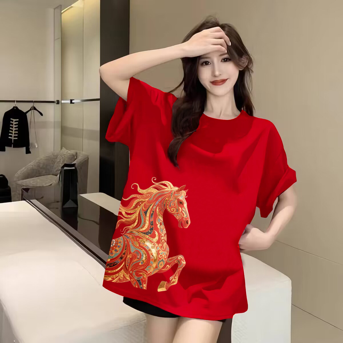 Red short-sleeved T-shirt women's 2026 new explosive Year of the Horse natal year clothes loose and slim pure cotton underwear top