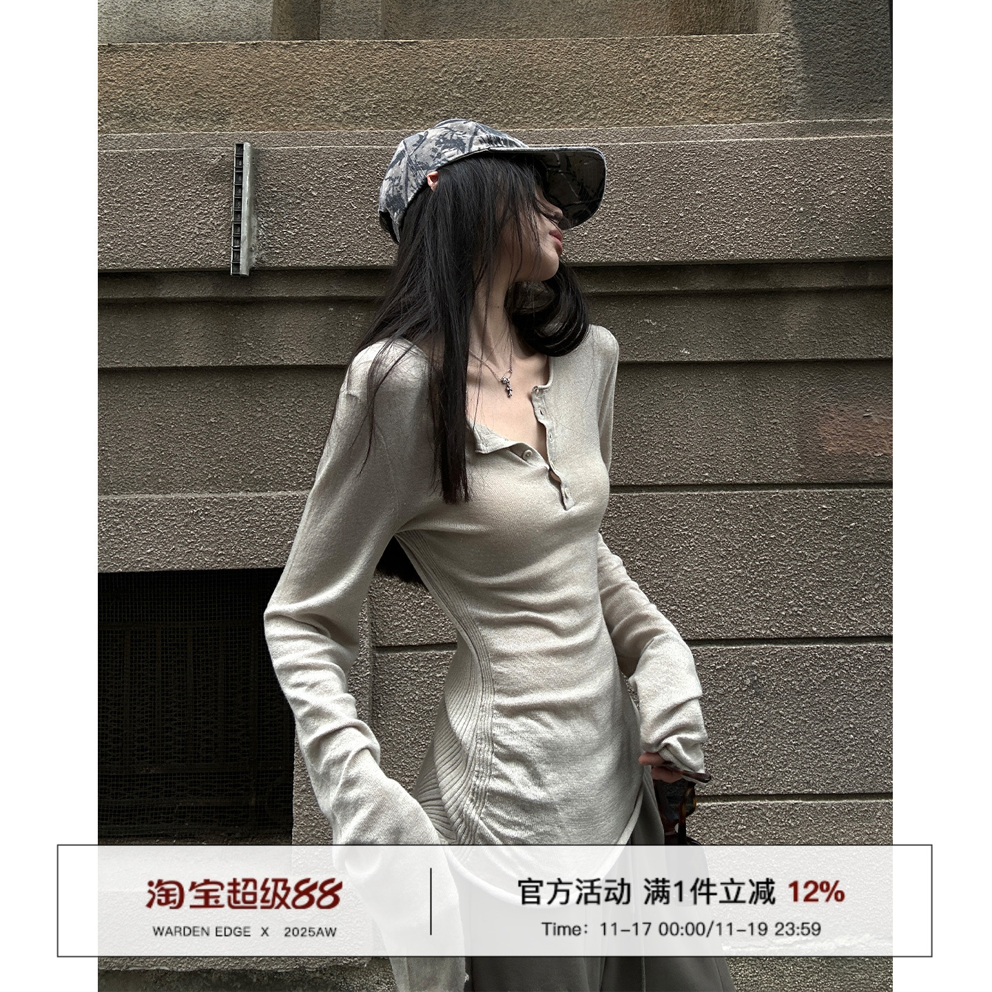 Han Haotian WARDEN EDGE Henry collar with long-sleeved T-shirt women's autumn and winter new slim woolen bottom top