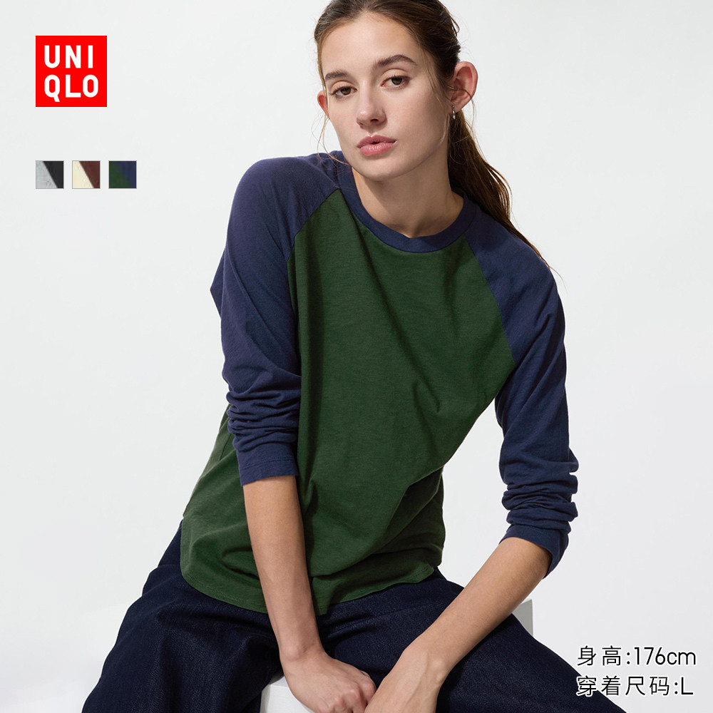 Uniqlo Women's Slub Ralan Sleeve Contrast T-Shirt/Long Sleeve 484869