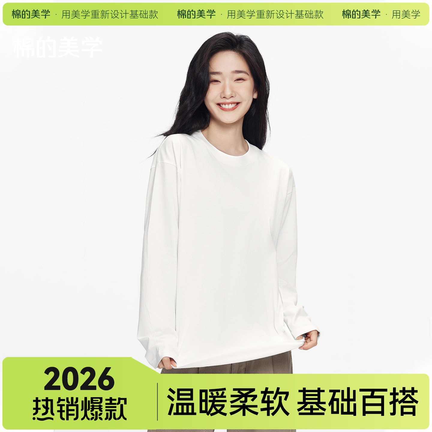 "Cotton Aesthetics" white inner base shirt, women's autumn and winter sweatshirt, pure cotton plush long-sleeved T-shirt, loose top
