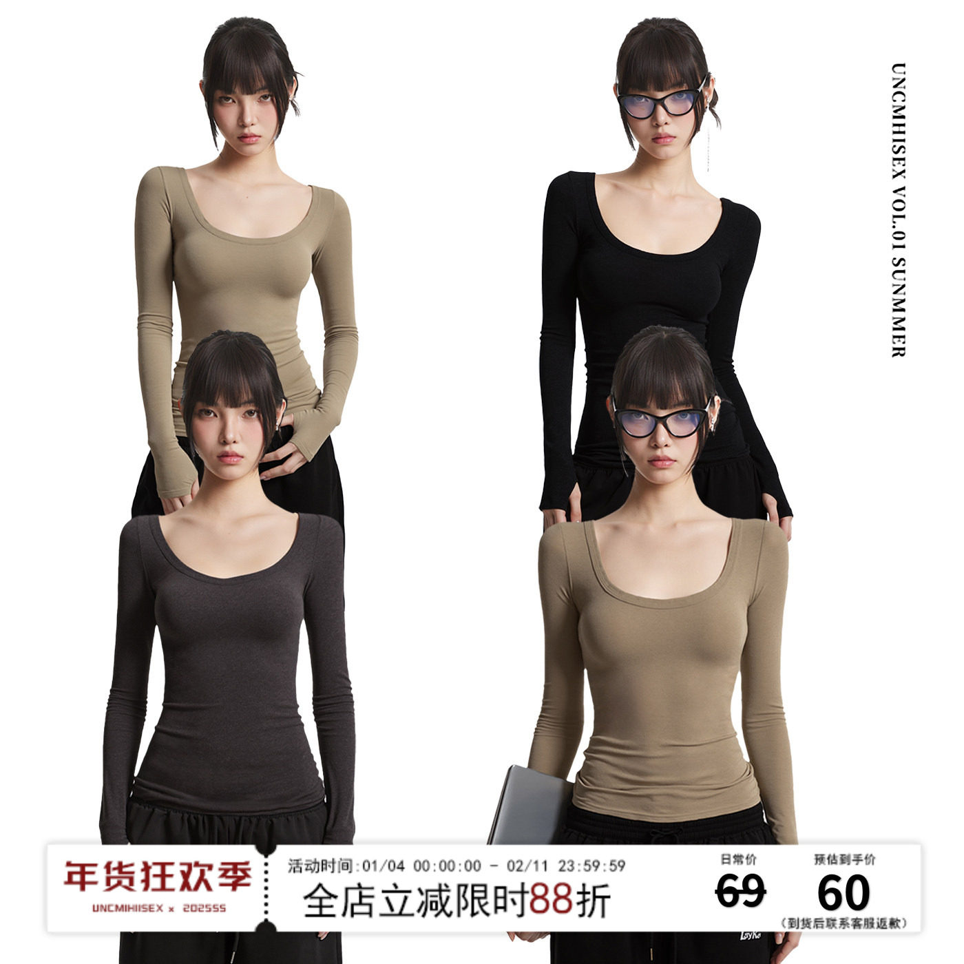 UNCMHISEX slim black thickened long sleeve T-shirt for women fall hot girls warm underwear top base layer