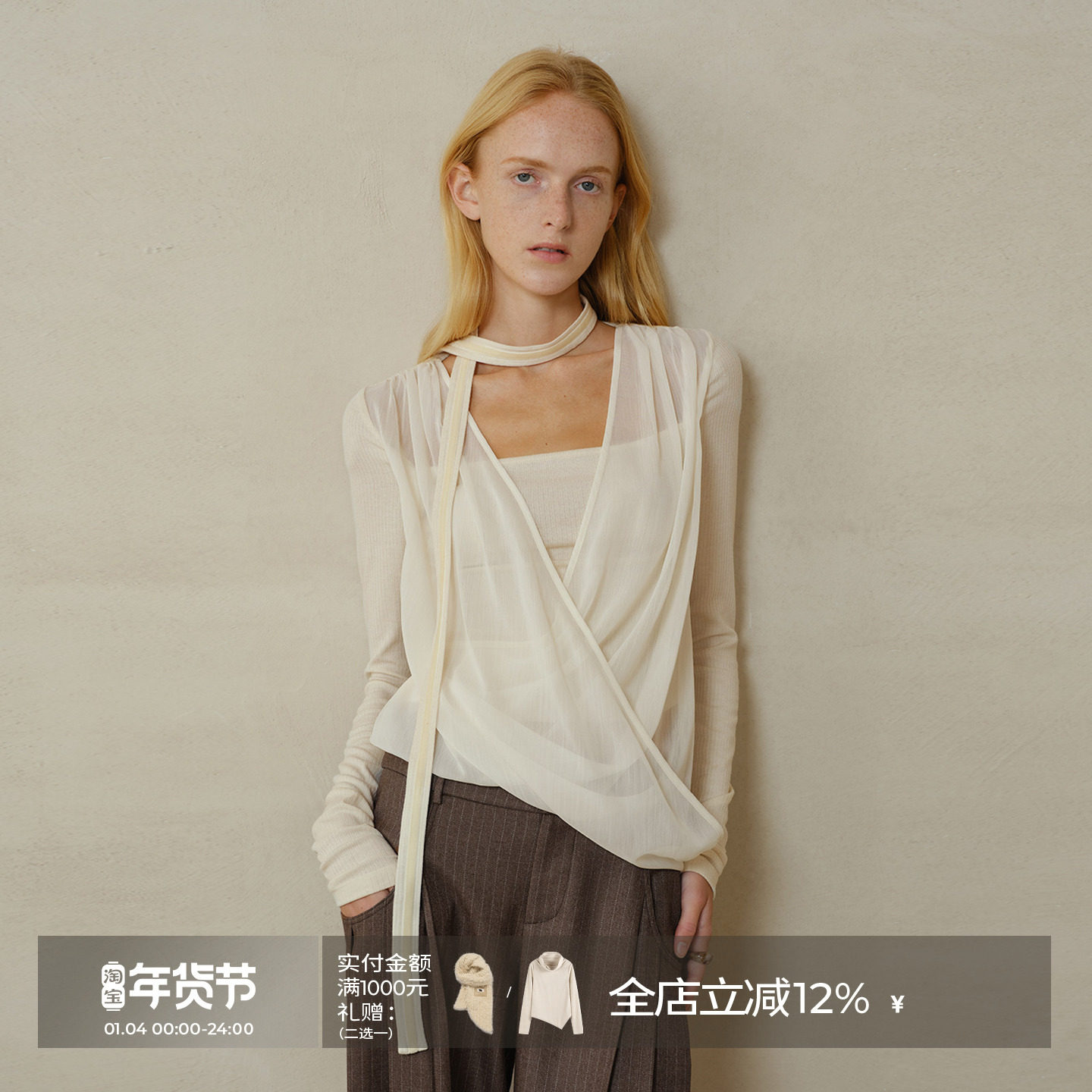 Someone Sometimes original draped overlapping mesh fake two velvet halterneck wool knit tops