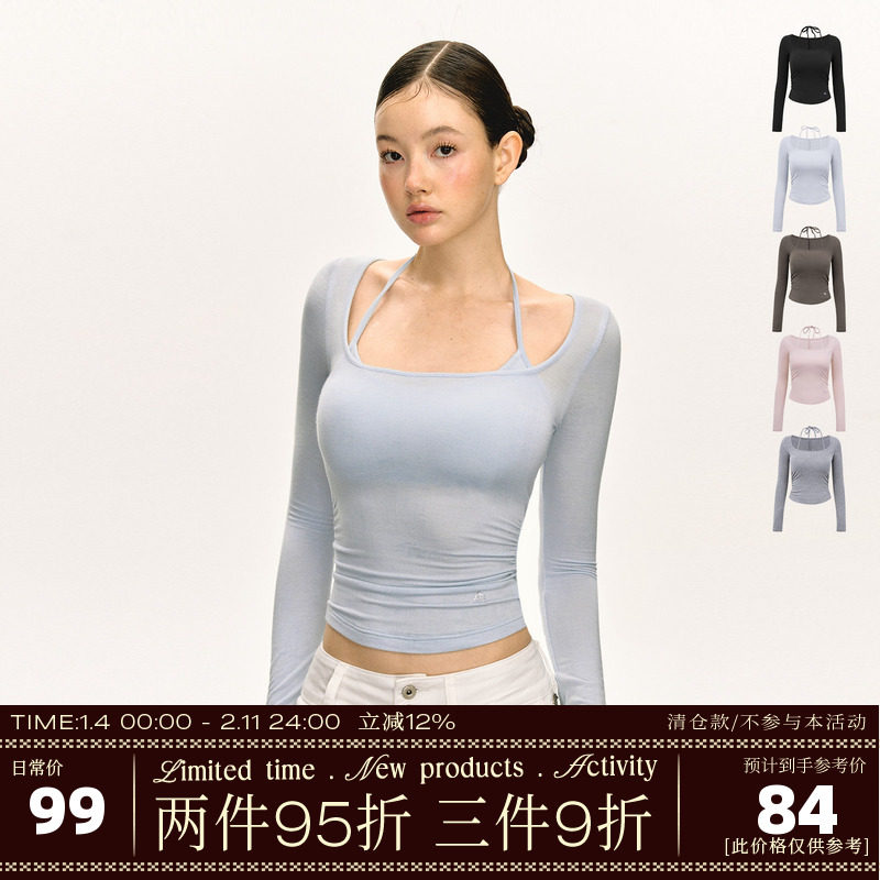 Ariseism American design sense fake two long sleeve T-shirts women's autumn new base slim cropped top