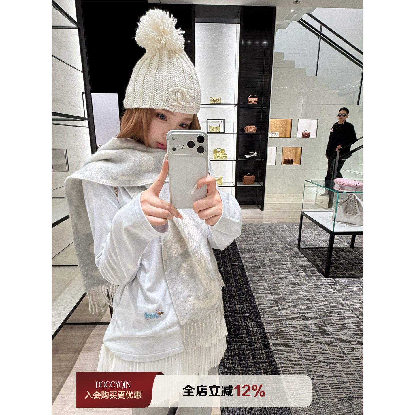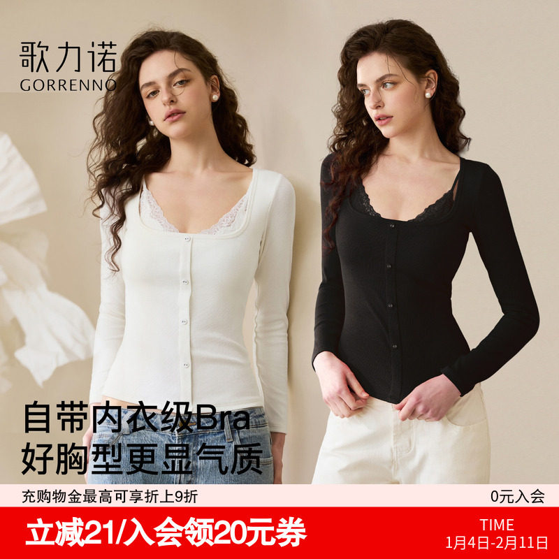 Wear a base shirt inside, a women's belt chest pad is warm, and a lace winter long-sleeved T-shirt is beautiful, and a super beautiful white top