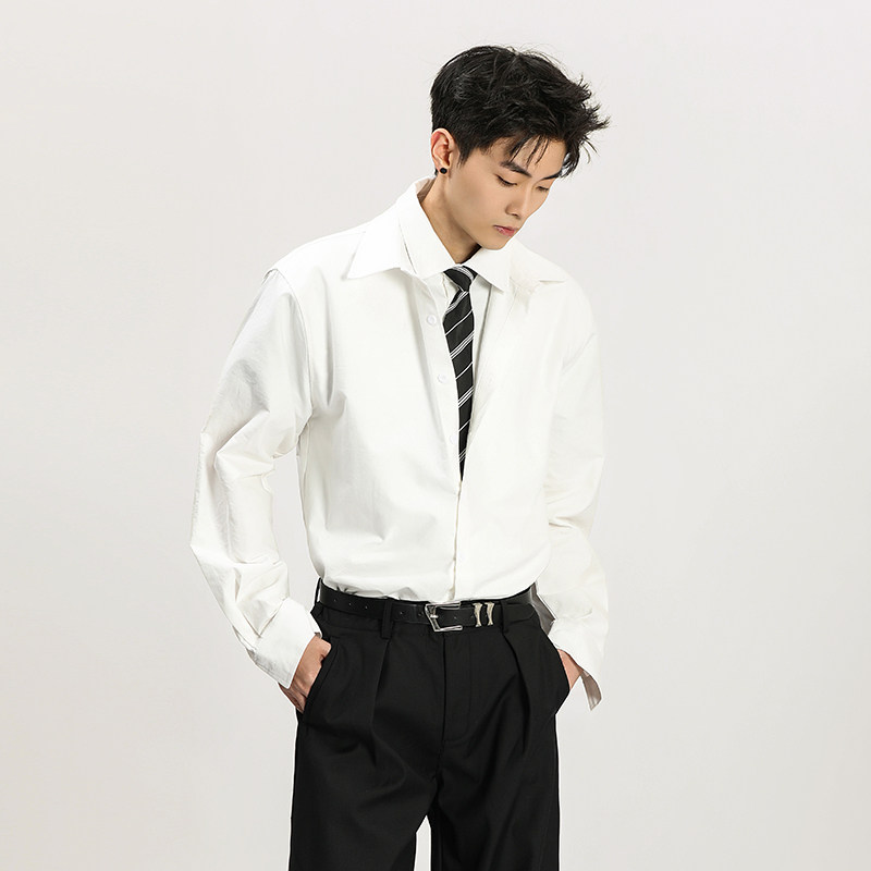 Oclin micro-silhouette anti-wrinkle atmosphere commuter white shirt with a single wear universal handmade fire buckle