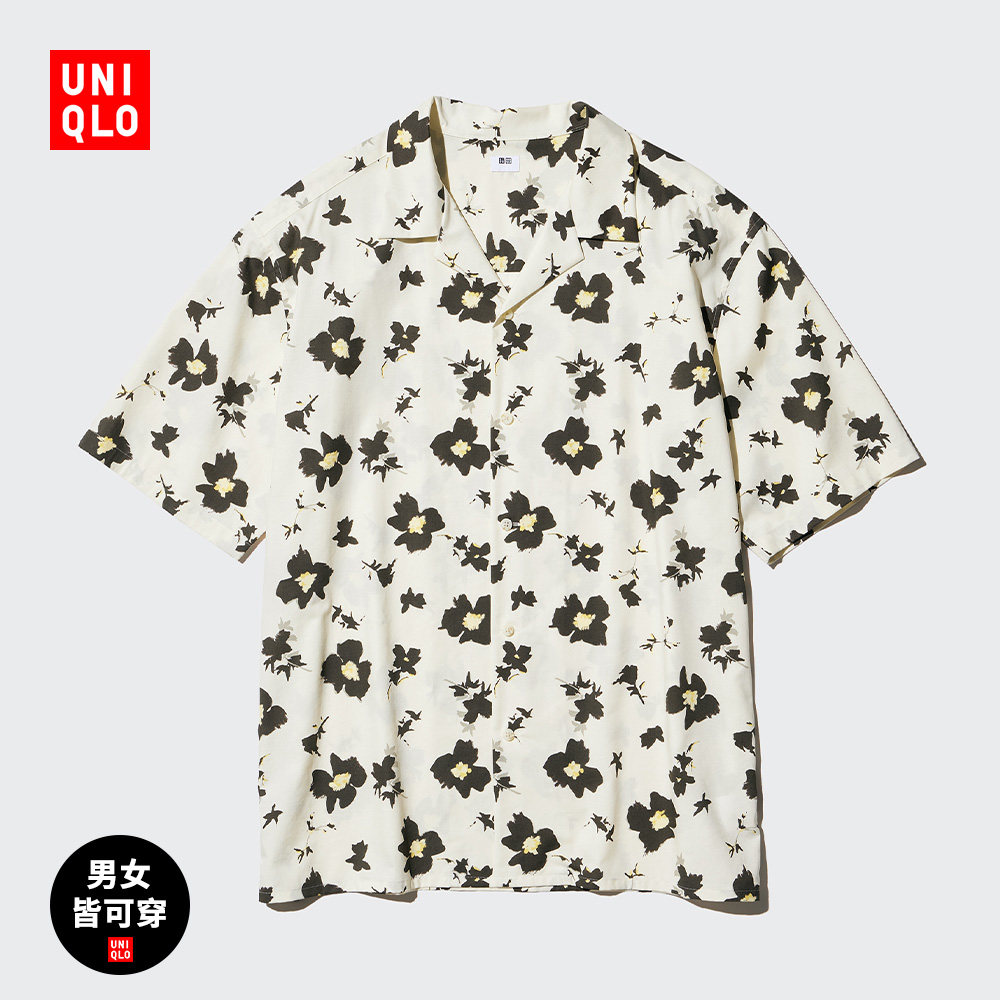 Uniqlo Men's Women's Modal Cotton-Blend Printed Open Collar Shirt Short Sleeve Cuban Collar Resort 477644