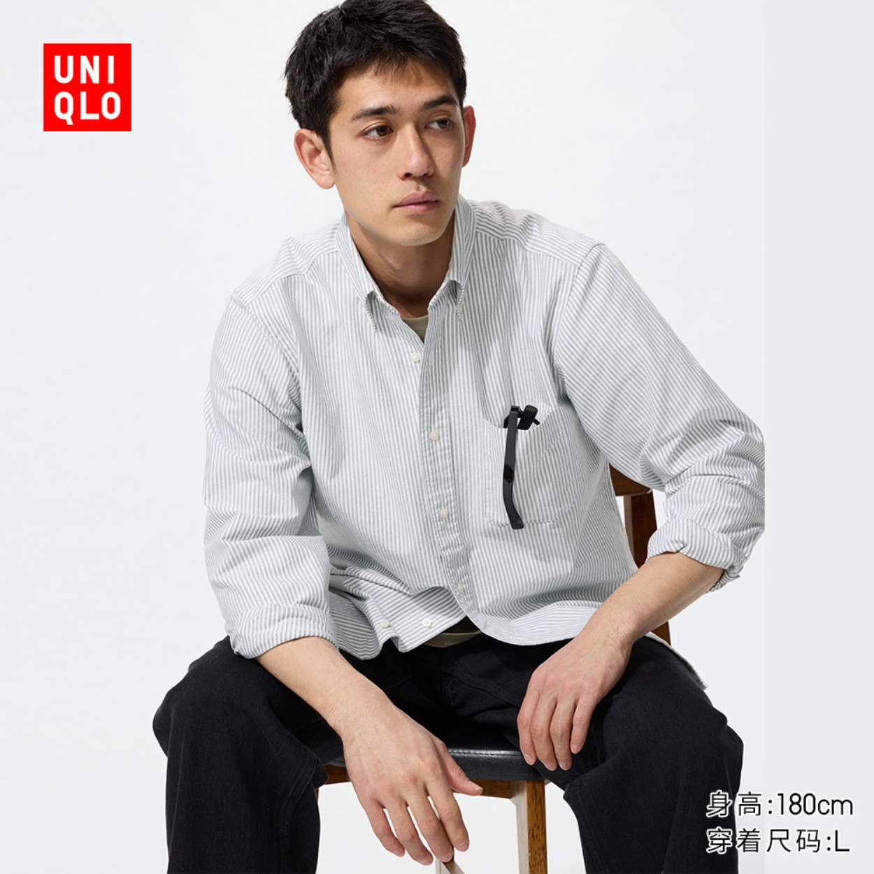 Uniqlo men's and women's Oxford spun striped shirts long sleeve shirts casual commuter 478087