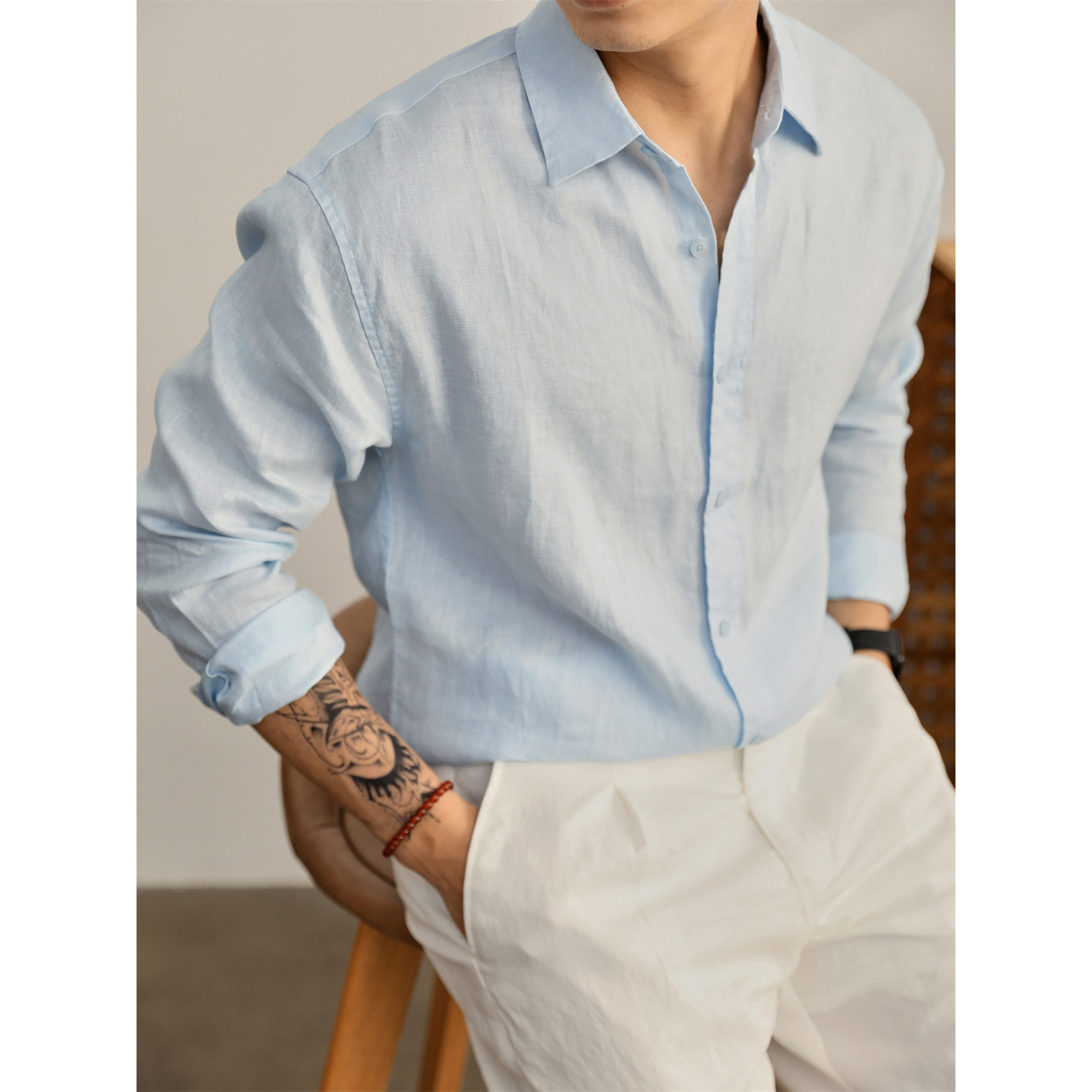 LUUD Italian elegant pure linen yarn weave light long-sleeved shirt men's old money commuting versatile breathable moisture-absorbing shirt