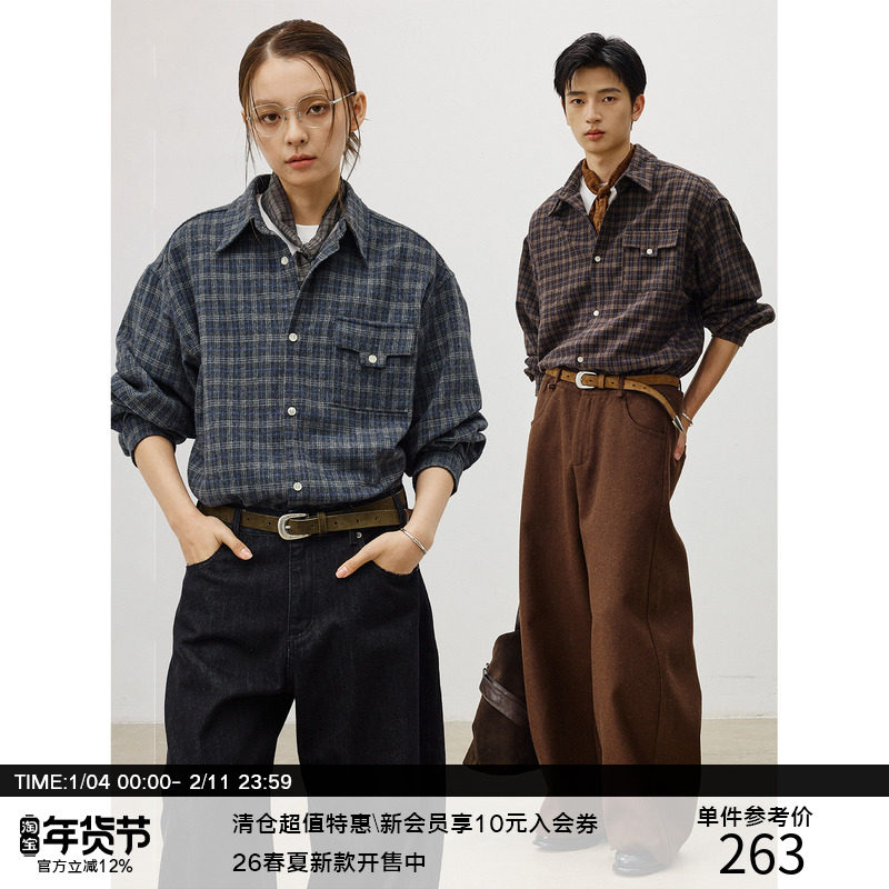 LR MADE 25AW T-Bag Flap Heavy Wool Vintage Atmosphere Check Brushed Long Sleeve Plaid Shirt