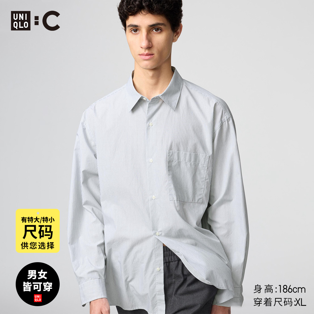 Uniqlo collaboration model / men's and women's loose striped shirt / long sleeve shirt casual 25 autumn/winter new 480763