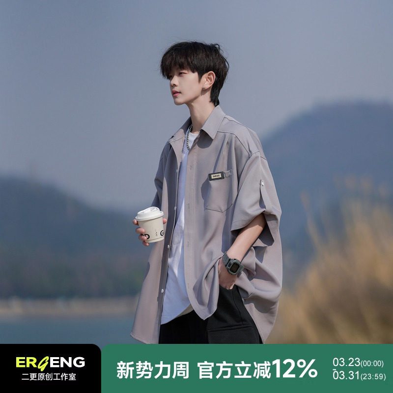 Second watch ice silk short-sleeved shirt men's new summer men's top high-end casual loose boys' shirt jacket