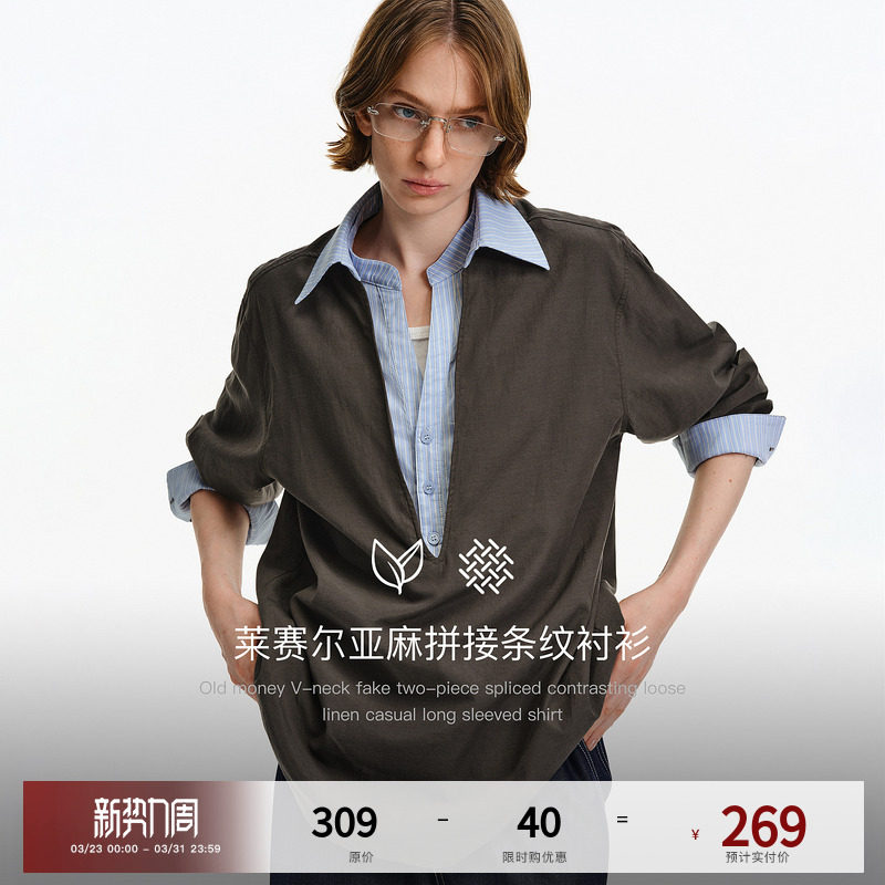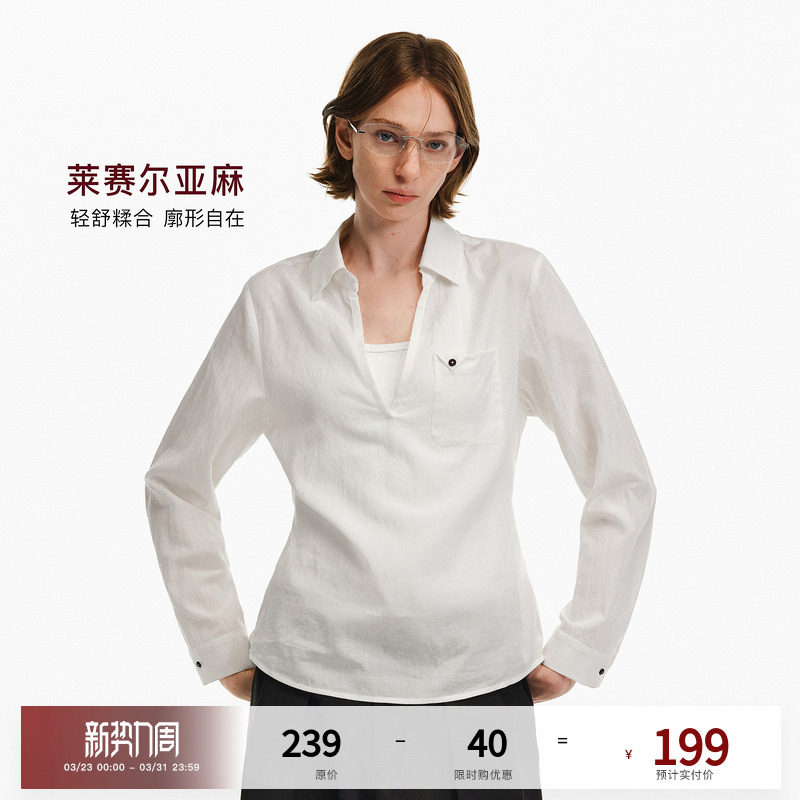 PCLP "Lyocell Linen" V-neck loose long-sleeved shirt spring casual lazy loose pullover shirt