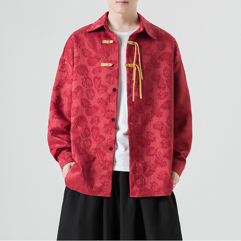 Chinese style Tang clothing men's retro Hanfu men's short-sleeved shirt buckle new Chinese three-quarter sleeve flower shirt jacket