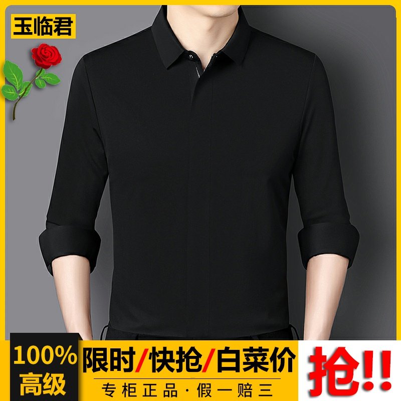Long-sleeved shirt men's high-end sense ruffian handsome spring new business casual dad top anti-wrinkle non-ironing black shirt