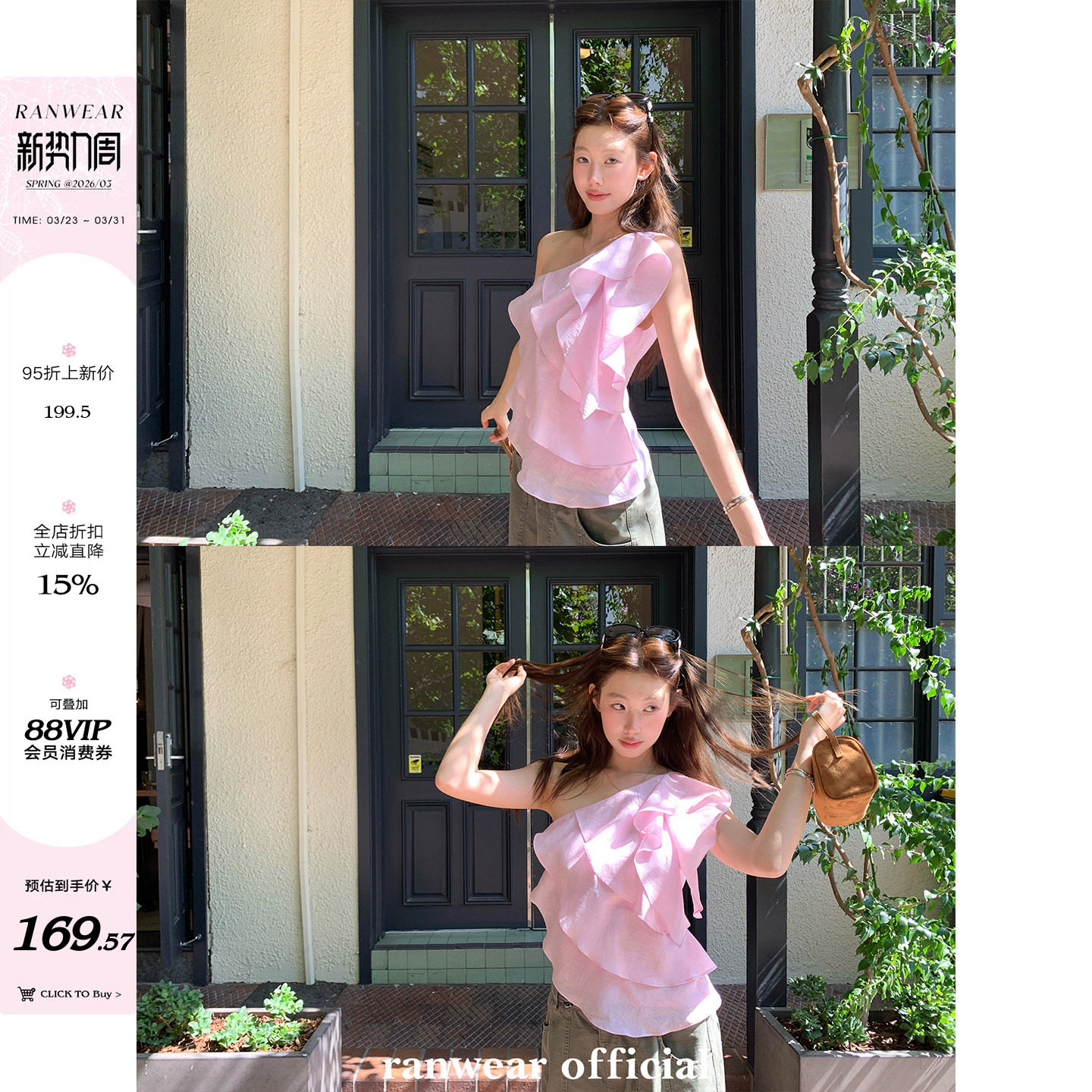 Ranwear 'Soft Light Loose Yarn' 57 Lyocell linen multi-layer ruffled streamer one-shoulder suspender cropped top
