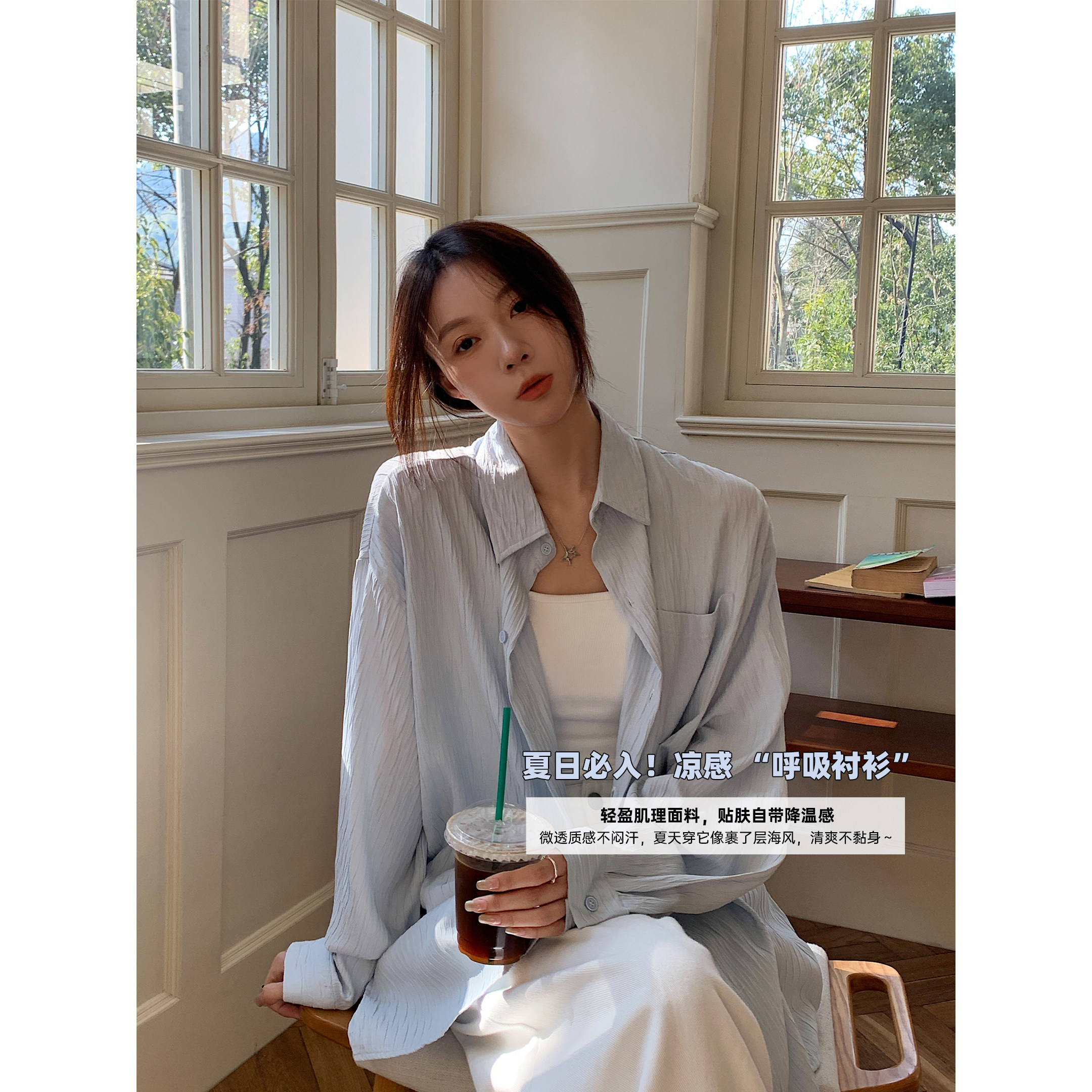 Vs what "Sea Salt Oolong" texture lazy style shirt physical sunscreen long-sleeved shirt island vacation
