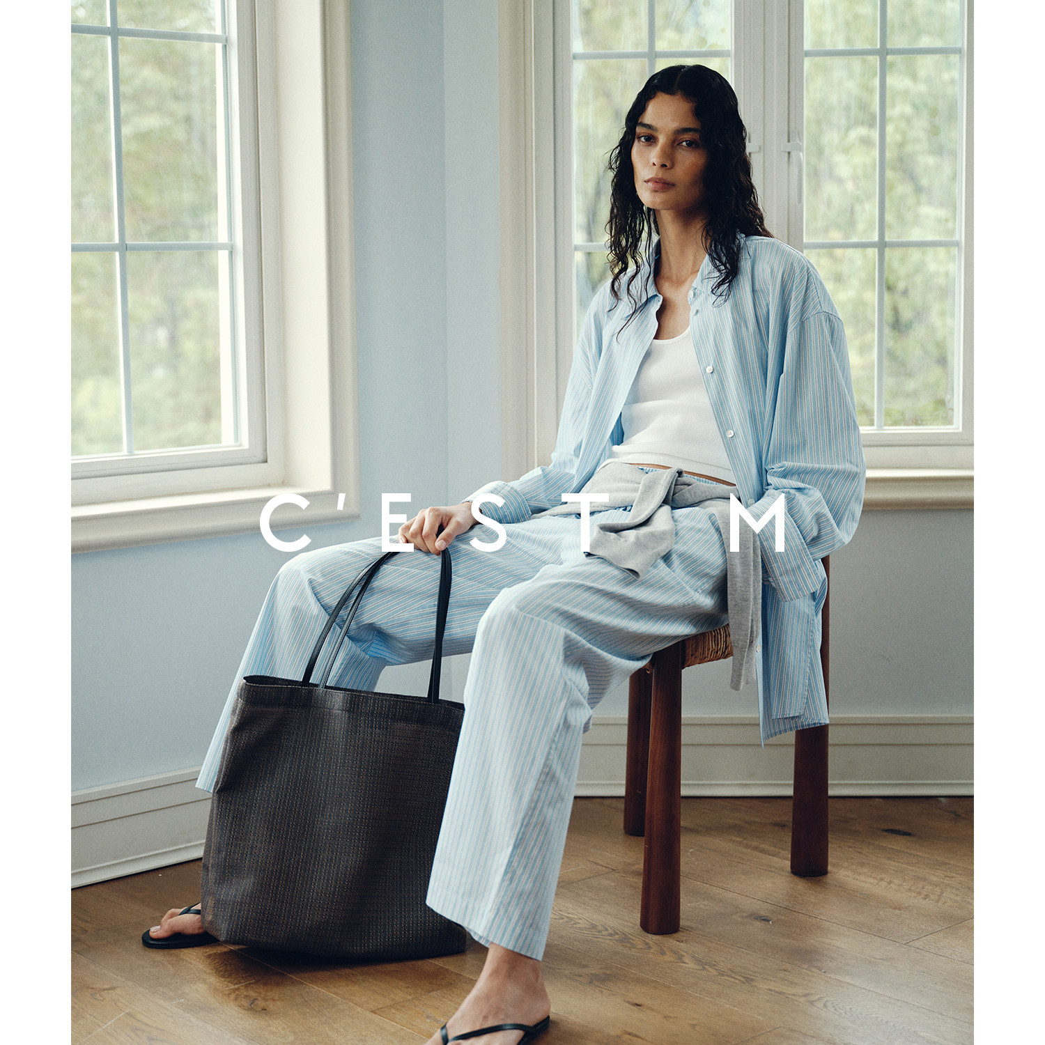 CEST M|Japanese imported luxury brand YB washed striped Navycore style shirt/trousers/shorts set