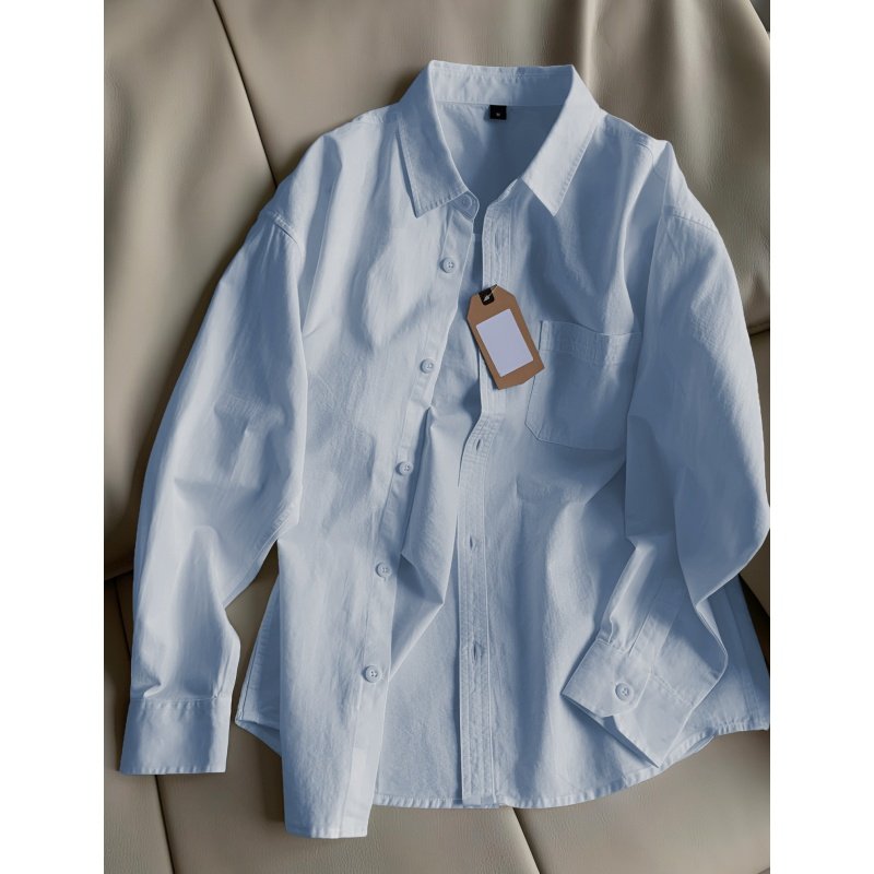 100% cotton straight shoulder light blue shirt spring and autumn inner layering long sleeve top casual men's and women's couple jackets