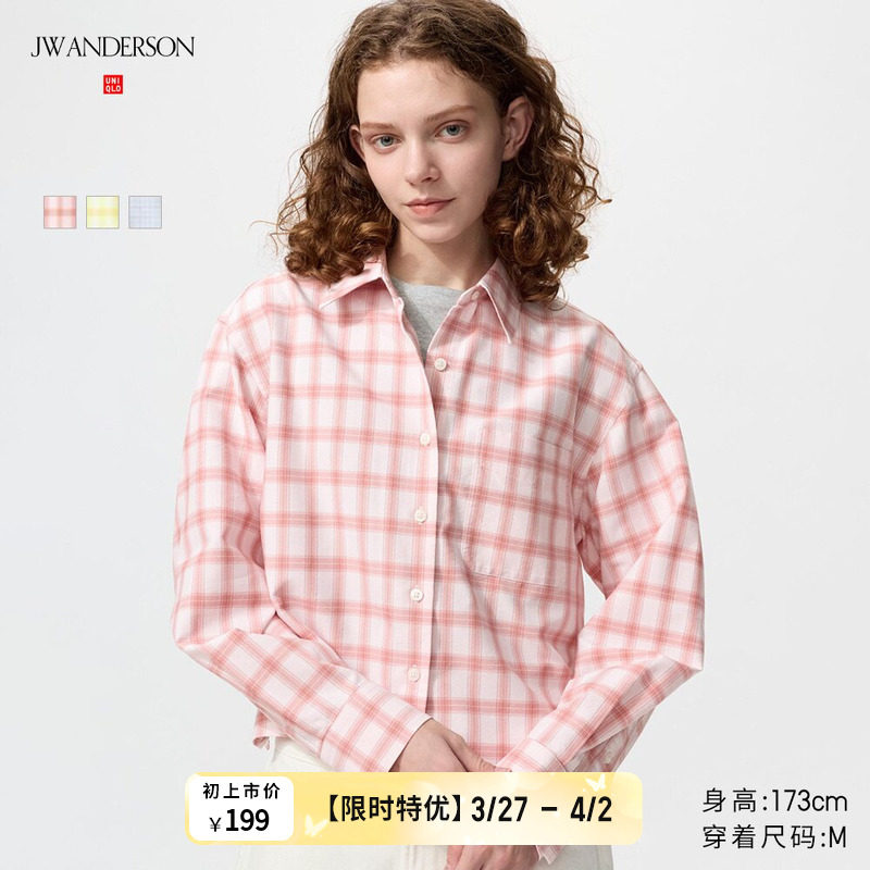 Uniqlo collaboration / women's Oxford spinning shirt / plaid long-sleeved shirt 484929