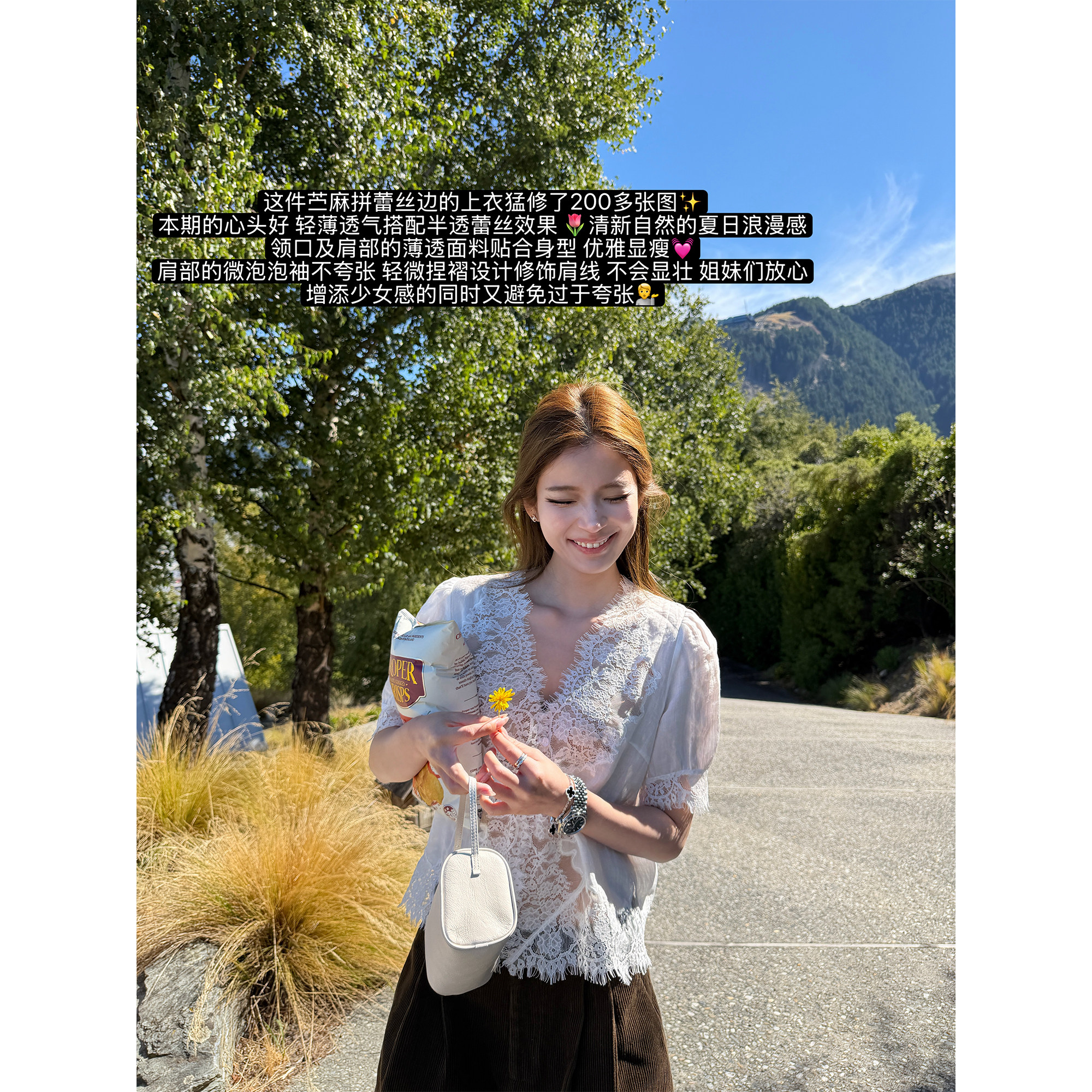 Pepe's sweet style lace edge strap short-sleeved shirt women's summer new foreign style shirt slimming chic top