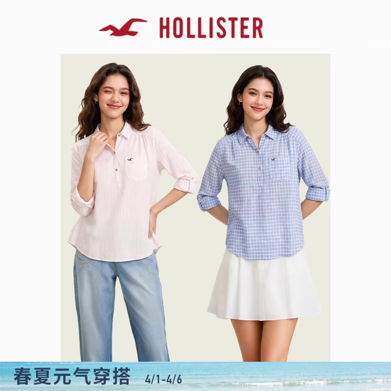 【New Color Added】Hollister Little Seagull Pattern Classic Three-Button Shirt Women's 340-6146