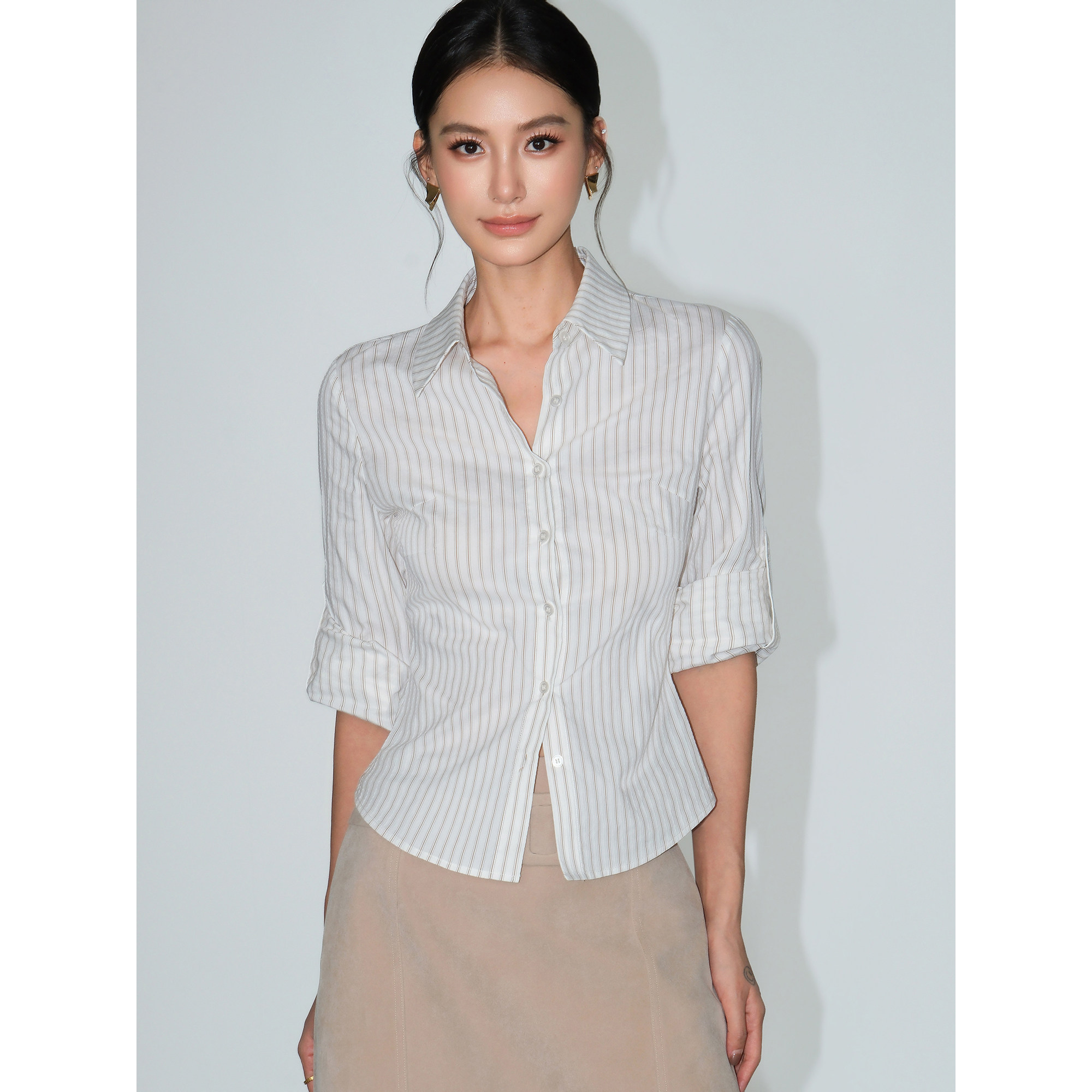 NEVA HU Office Siren Commuter Striped Shirt Women's High Intelligence Shirt Temperament Slim Top