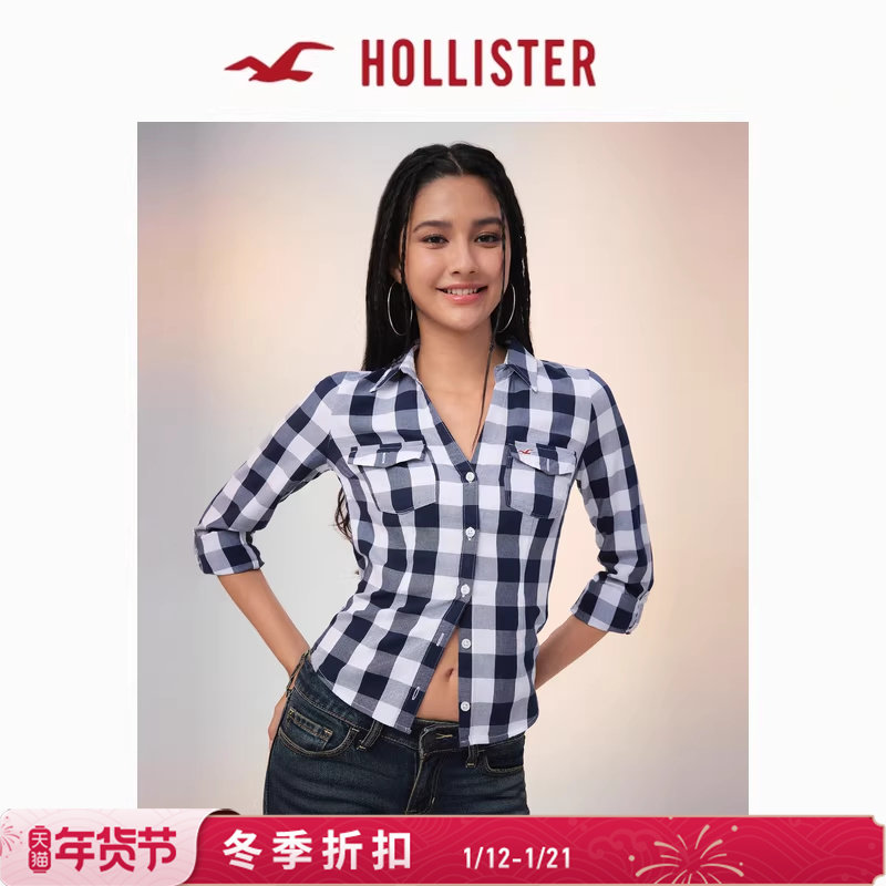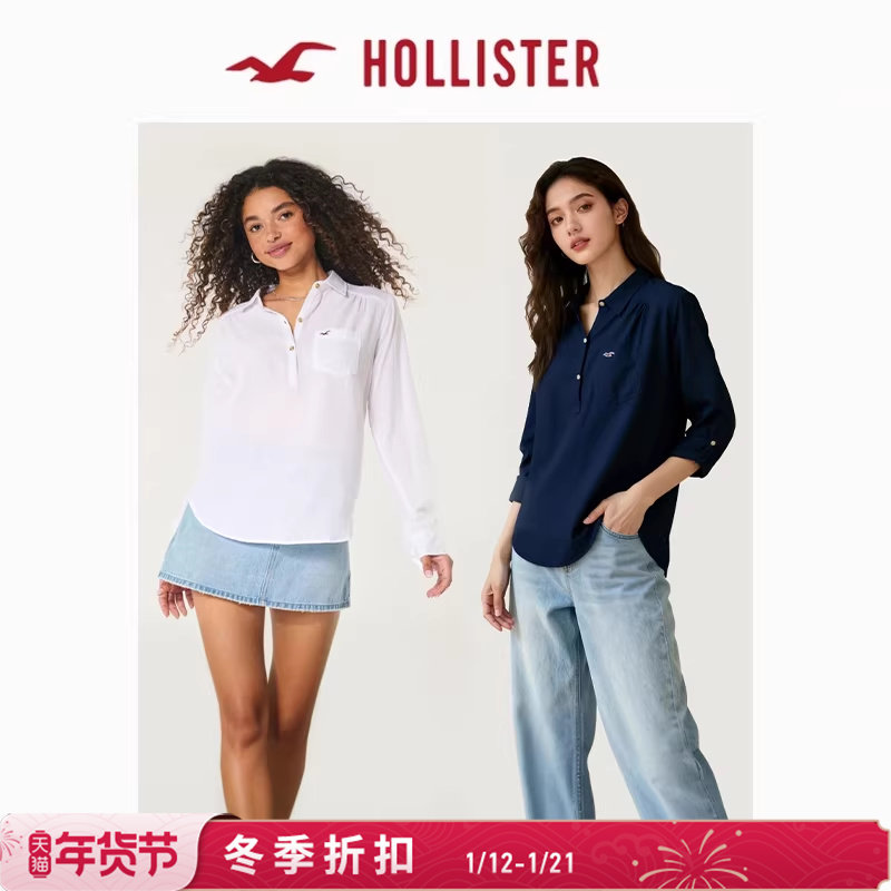 Hollister Little Seagull Pattern Classic Three-Button American Simple Versatile Shirt Women's 340-6043