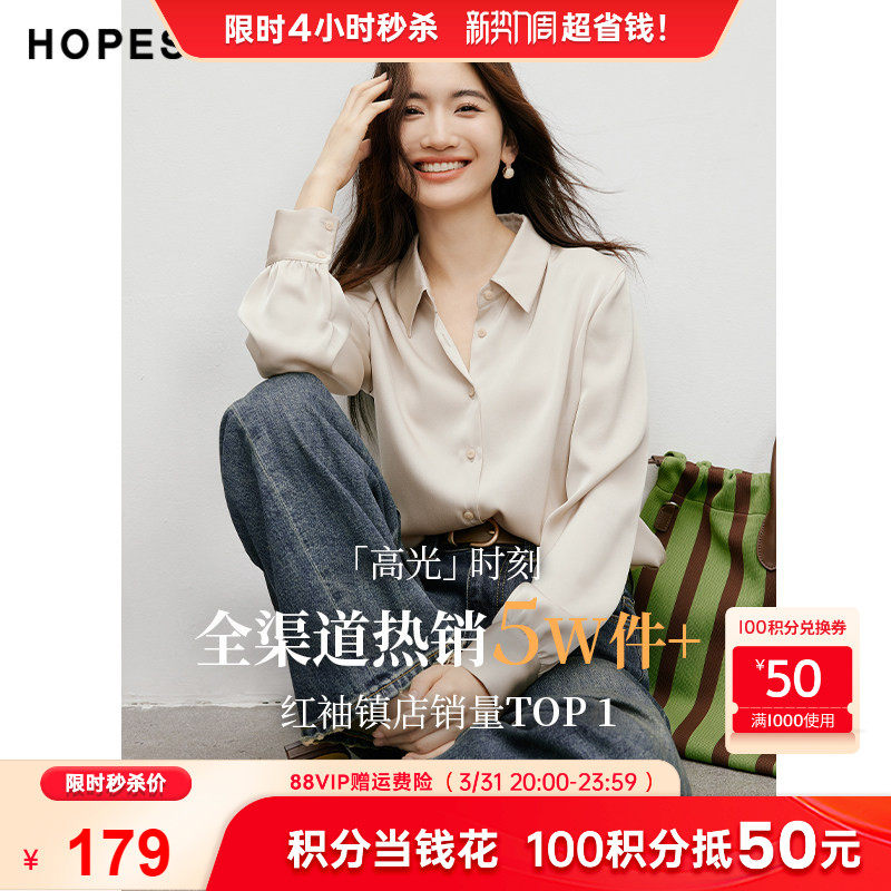 Red sleeves [high gloss drape] satin shirt spring and autumn new women's lapel drape slimming temperament top