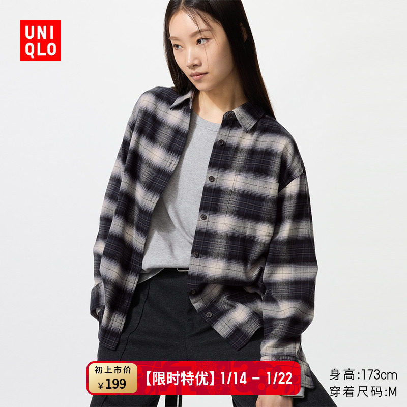 Uniqlo Women's Flannel Shirt/Plaid Long Sleeve Shirt 481173