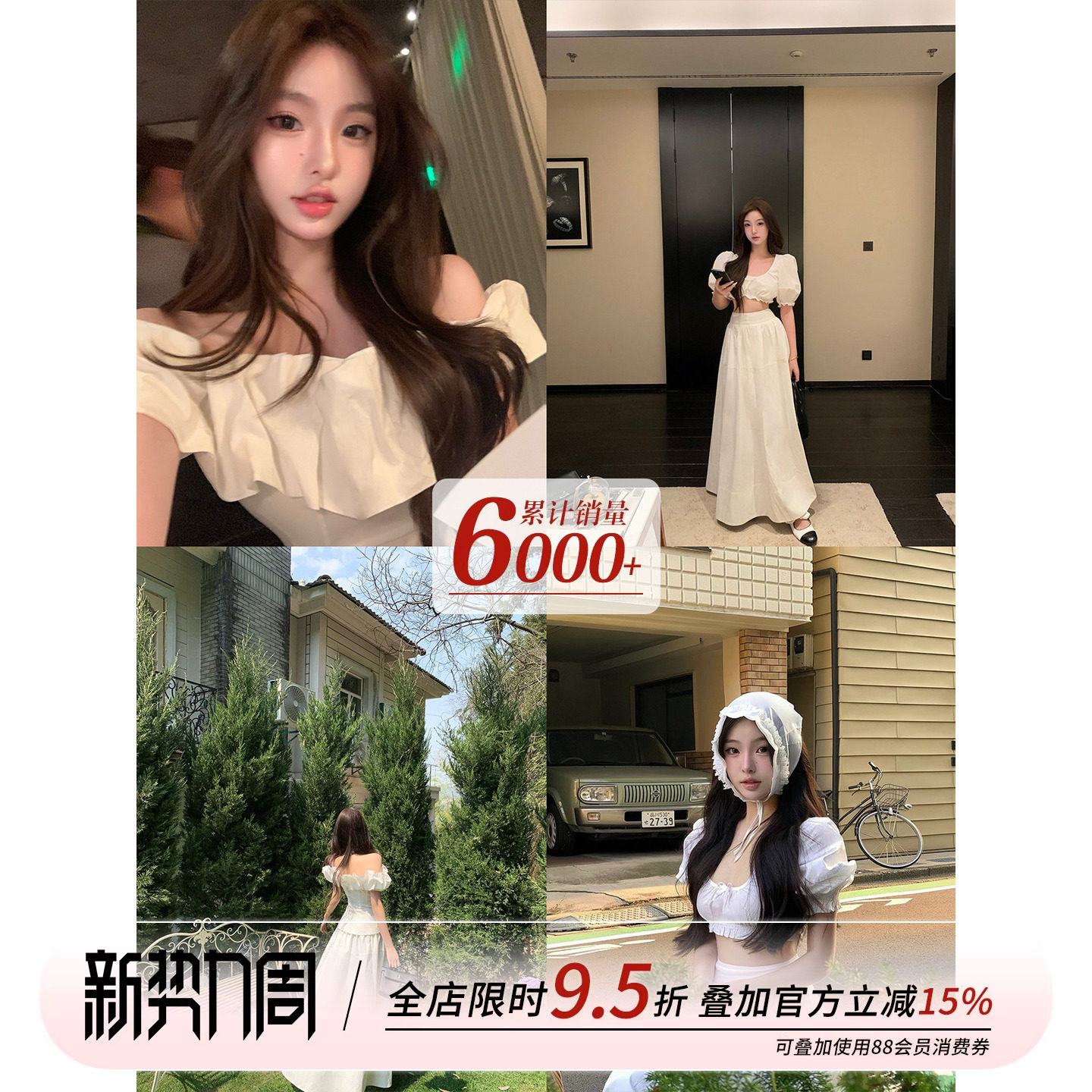 OYFF Fan Fan Lai Lai [Coconut Shadow White Sand] one-shoulder shirt women/puff sleeve top/skirt three-piece set