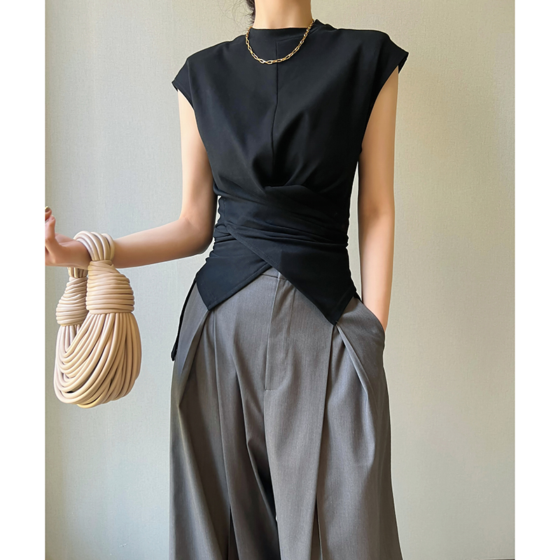 AYINGJIA old money shirt women's cross button shirt black commuter loose temperament sleeveless niche top