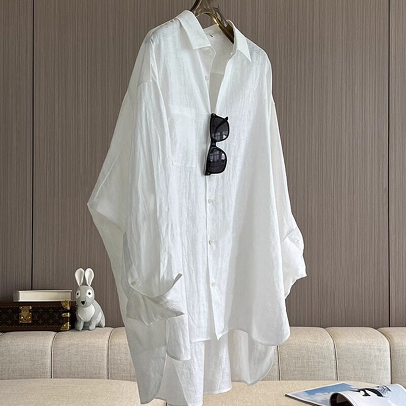 White cotton and linen sunscreen shirt women's summer loose casual top, lazy style thin jacket, linen slightly sheer shirt