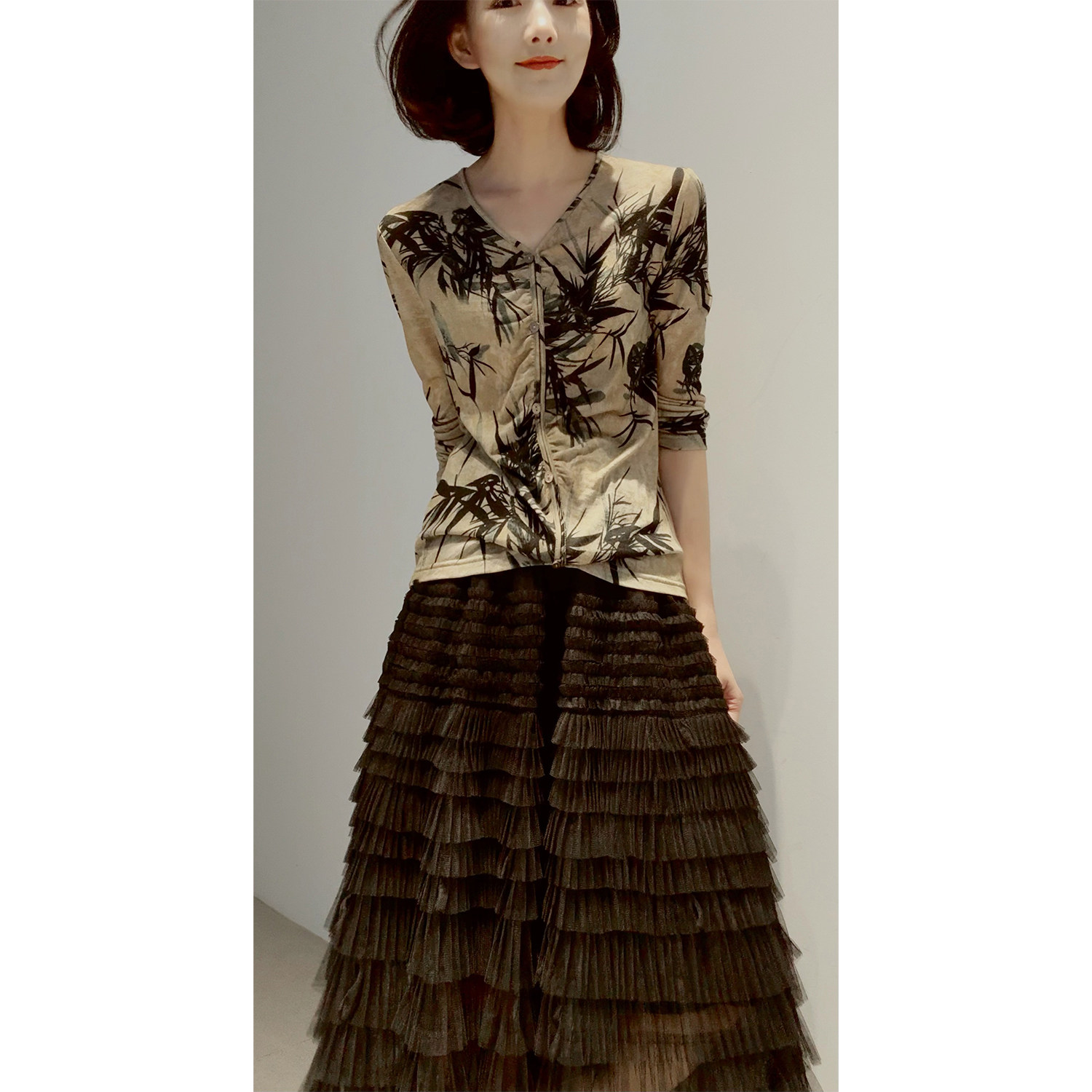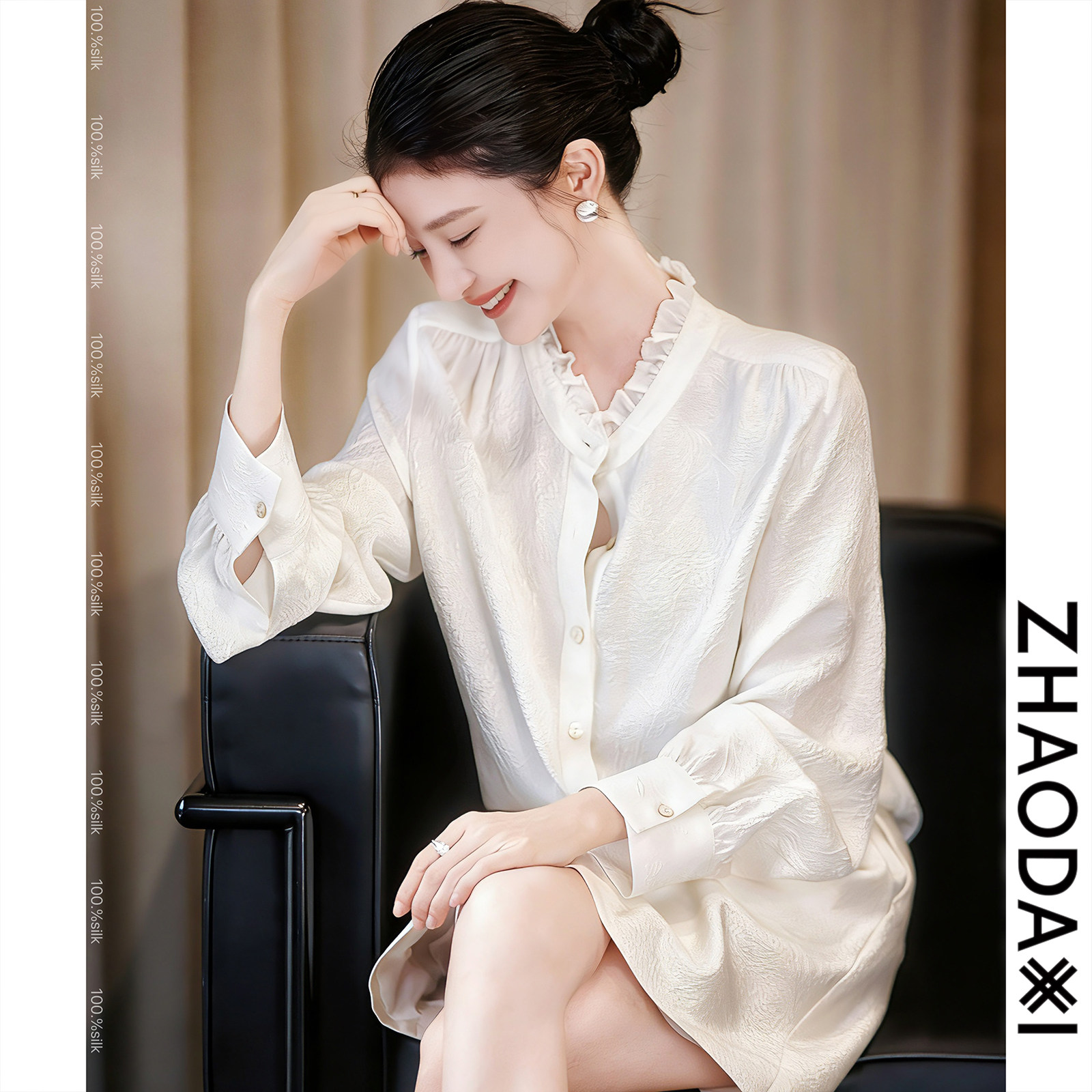 Zhao Daxi|Sicilian upgraded version of crown crepe silk shirt|100 silk ruffled lantern sleeve print