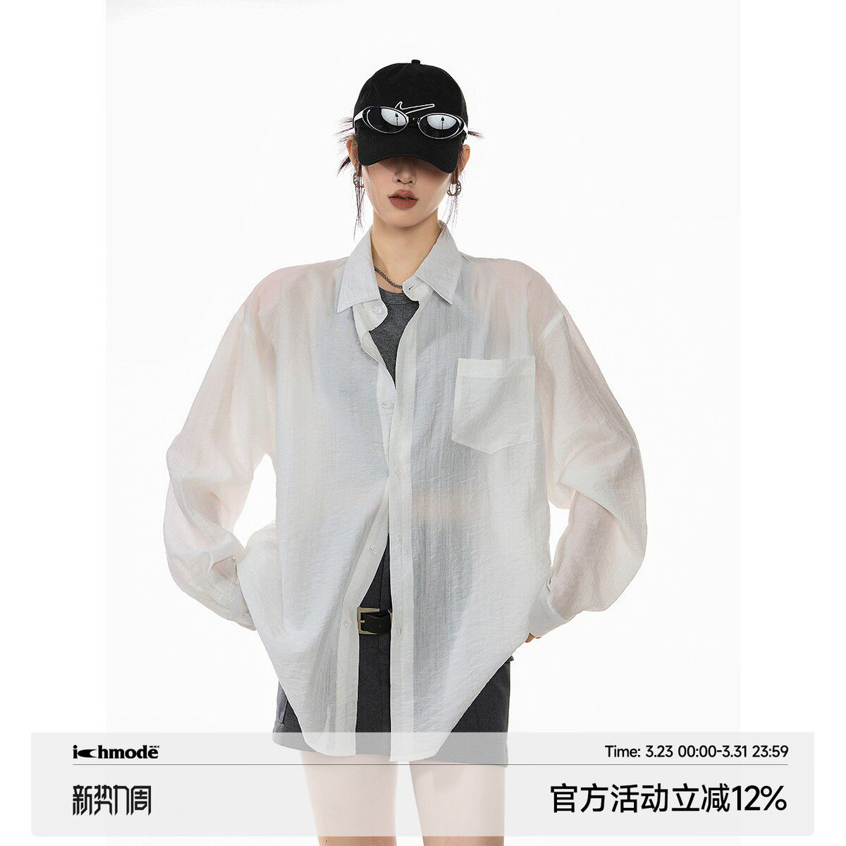 ICH MODE American white shirt women's summer loose physical sunscreen cover-up shirt jacket long sleeve top