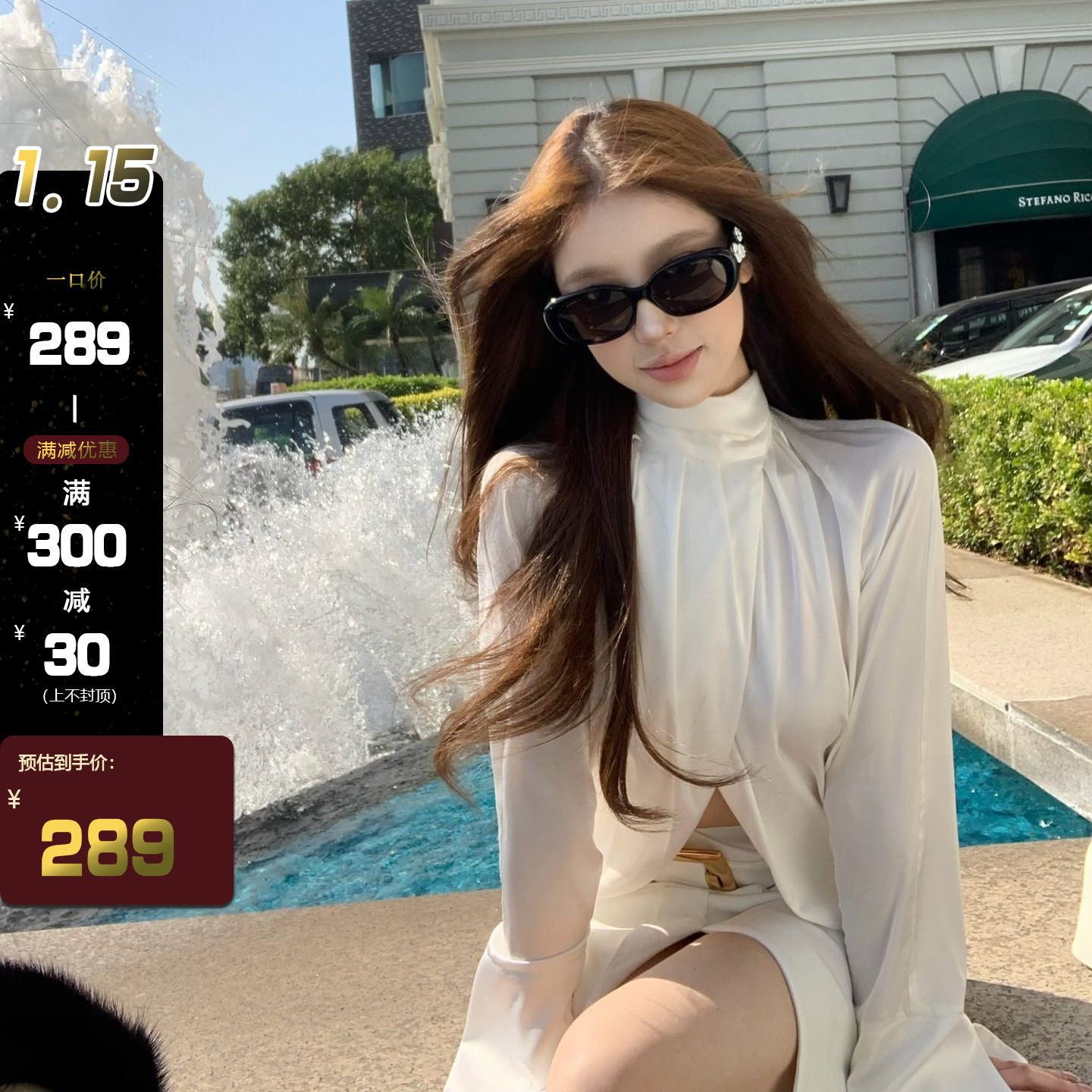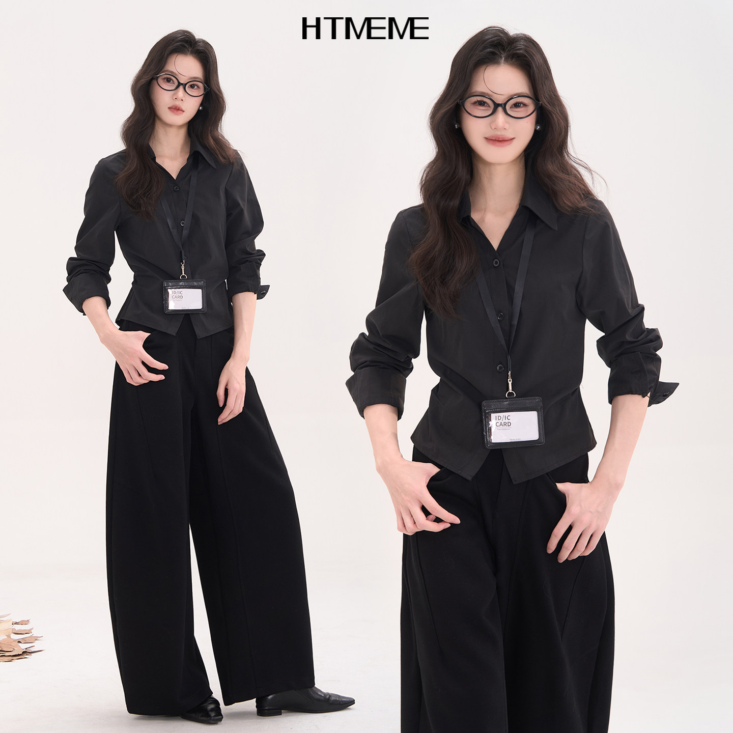Huatian window HTmeme champagne gilt ~ slimming shirt design sense niche long-sleeved strap waist top for women