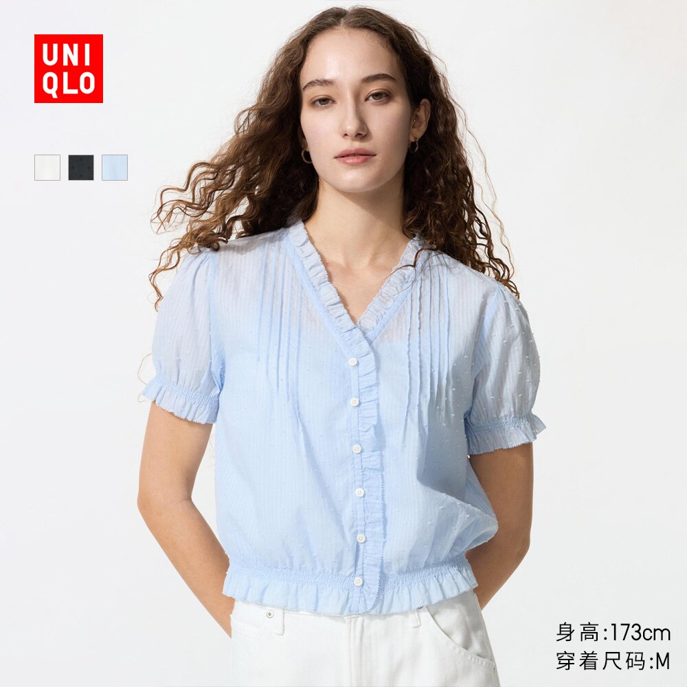 Uniqlo Women's Cotton Jacquard V-Neck Shirt/Short Sleeve Shirt 483881