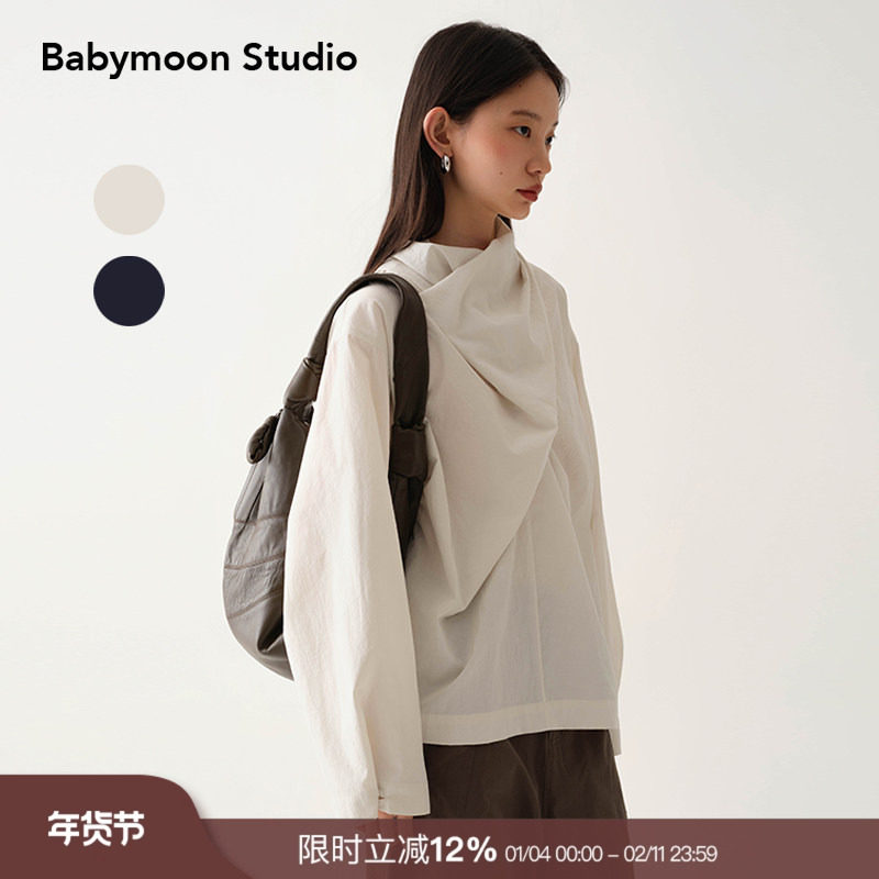 Babymoon scarf collar design long-sleeved shirt spring and autumn new unique temperament loose small top for women