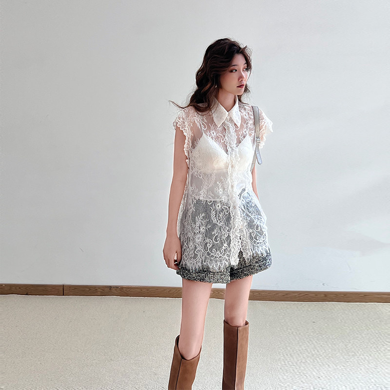 Ziyue French design lace top feminine temperament fashion versatile hollow sleeveless shoulder vest sleeveless shirt