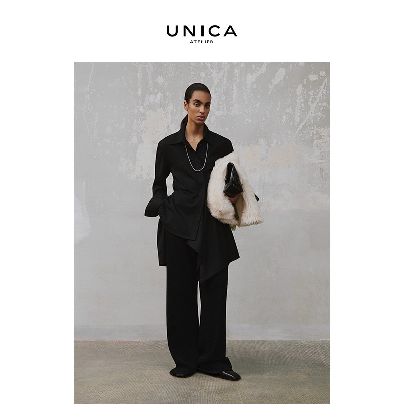UNICA ATELIER Paris Line | Irregular fishtail hem imported striped jacquard wool waist shirt