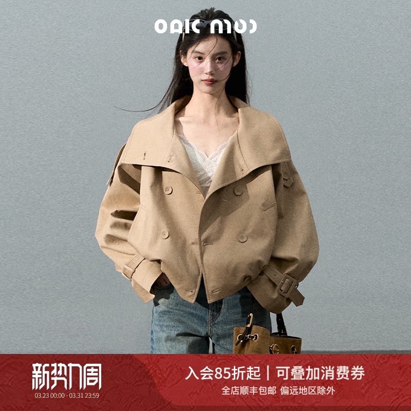 OAKMOO/ "Through the Oak Forest" Lyocell cotton stand-up collar trench coat jacket double-breasted short coat top for women