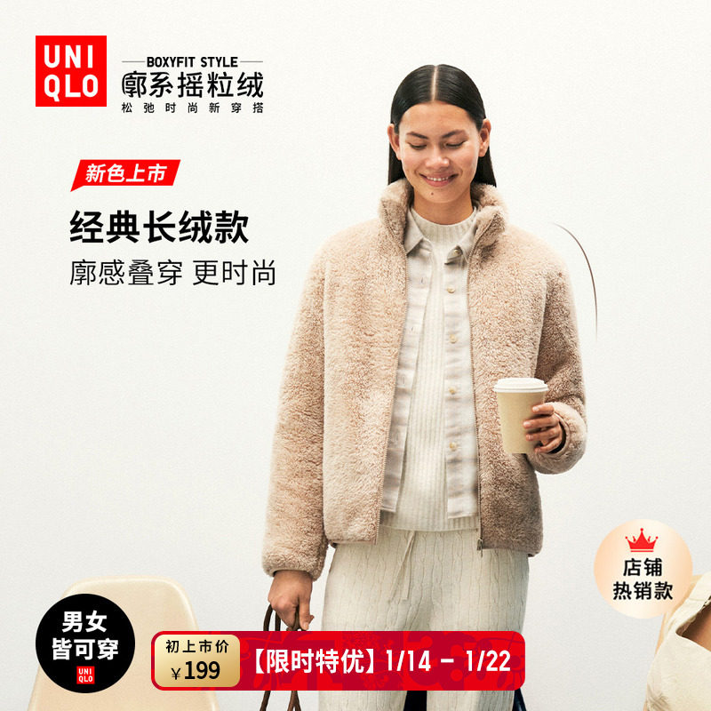 Uniqlo women's men's imitation lambswool fleece casual cardigan long-sleeved loose jacket winter new 479616