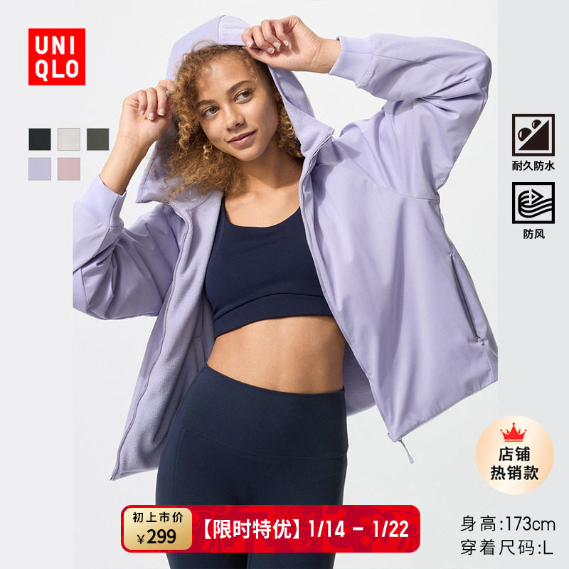 Uniqlo Women's Reversible Windproof Polar Fleece Zippered Hooded Jacket Outdoor Waterproof Winter New 479697