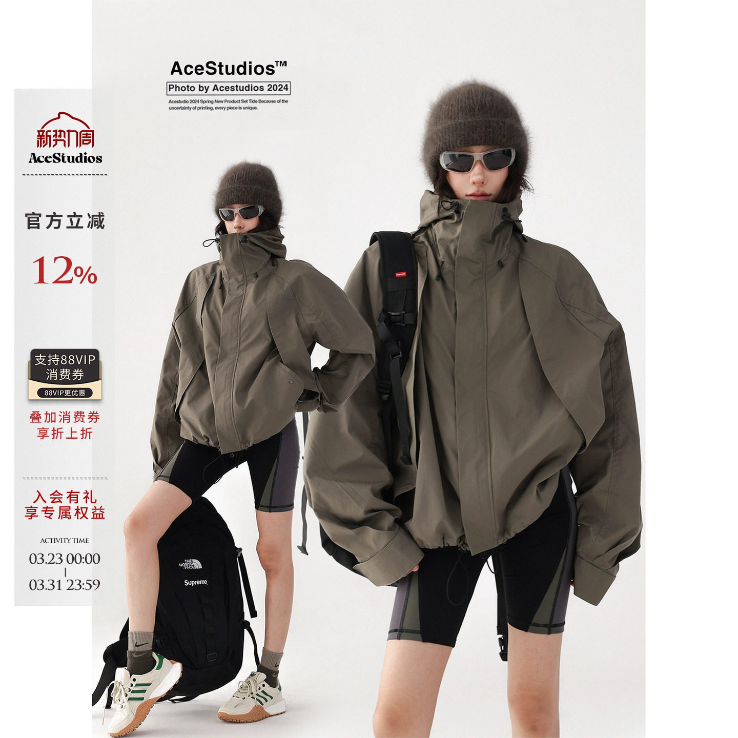 Acestudios Spring American Unisex Outdoor Hiking Clothing Jacket Hooded Cargo Jacket Men's and Women's Trend