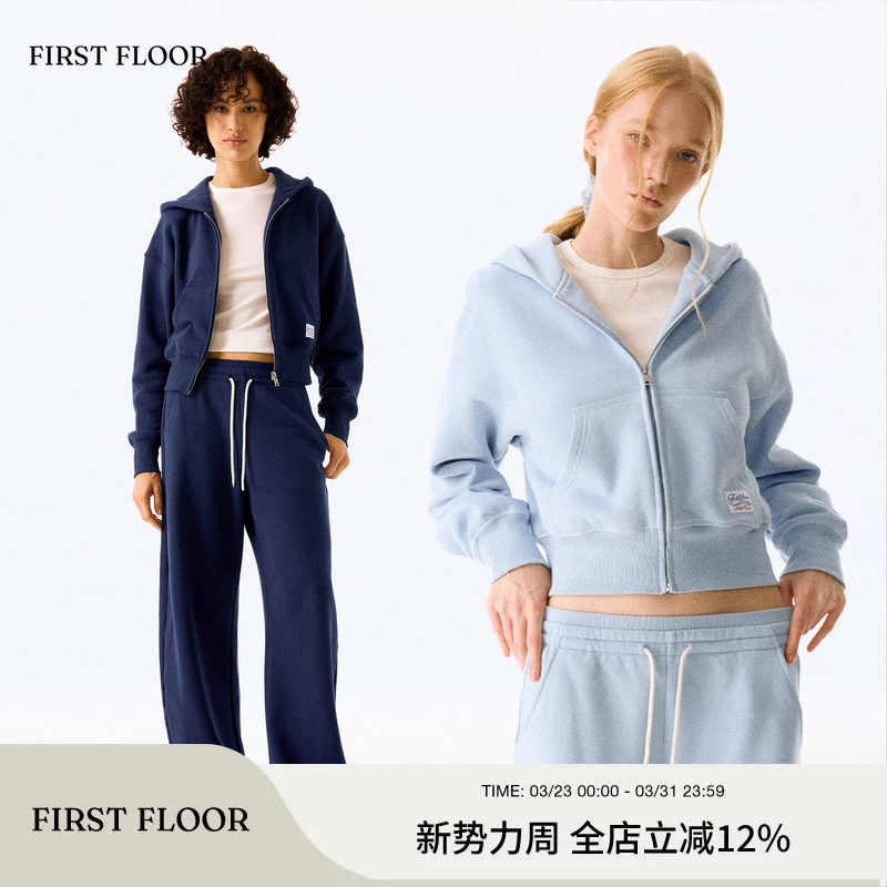 FIRSTFLOOR cloud-sensitive autumn/winter silhouette wears a lazy bat sleeve soft waxy fleece casual hooded sweatshirt set