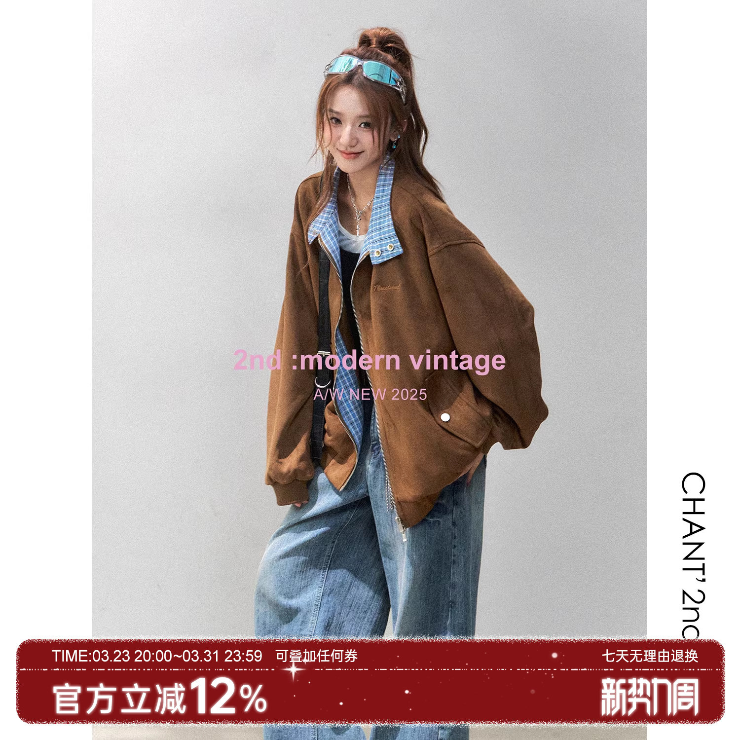 CHANT2nd star same plaid patchwork suede jacket women's 2026 spring baseball uniform casual jacket