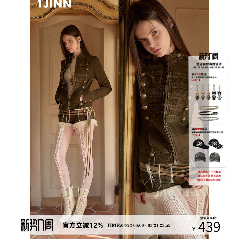 [Fang Zhiwen's same style] 1JINN STUDIO court Napoleon double-breasted old jacket women's stand-up collar short style